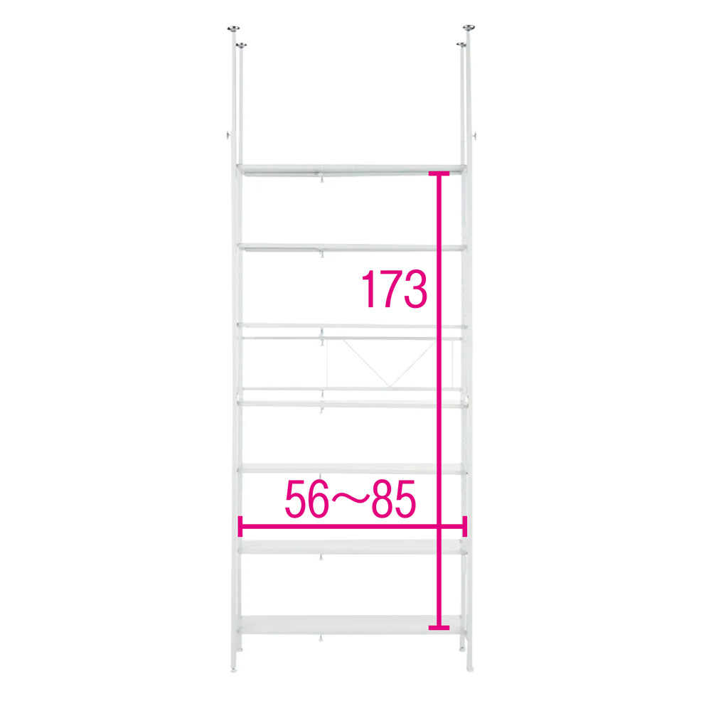 「天井に梁や柱がある…」「幅ぴったりサイズが欲しい…」そんなあなたにオススメ!幅も高さも無段階の伸縮式で、置きたいところにジャストフィットな収納を実現します。幅も高さも無段階の伸縮式で、置きたい場所にぴったり!●置き場所ちょうどサイズの収納が欲しいけれど、なかなかいいものが見つからない…。 こんな悩みにお困りの方におすすめです!●幅は無段階の伸縮式で、壁から窓の間などお好みの幅サイズに調整できます。●収納物が増えたときは、幅を伸ばせば収納力がアップします。●高さは自立した4本の突っ張りが、梁や柱などの天井の凸凹にもそれぞれ対応できます。※天井対応高さは、210〜260cmになります。●伸縮方法はネジのみなので簡単に伸縮できます。たくさんあります、こだわりの機能!●側面には落下防止用のネットが付いているため、サイドからのこぼれ落ちは心配ありません。●背面は背板がないため、コンセント前やスイッチ前でも設置できます。●棚板1枚当たりの耐荷重は約20kg。棚板裏に補強が入っています。●棚板は5cm間隔で全て可動棚。様々な大きさの収納物がしっかり片付きます。 文庫本や単行本、少年コミックやワイドコミックなど、大きさがバラバラな本をサイズごとに。 他にも、CDやDVDといったAV収納や、観葉植物やおしゃれなインテリアなどの見せる収納にも◎●脚部にはアジャスターが付いているので、がたつきを防止します。