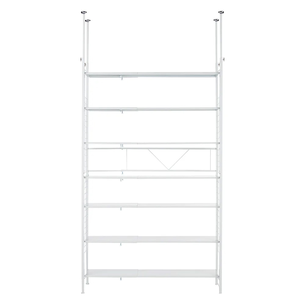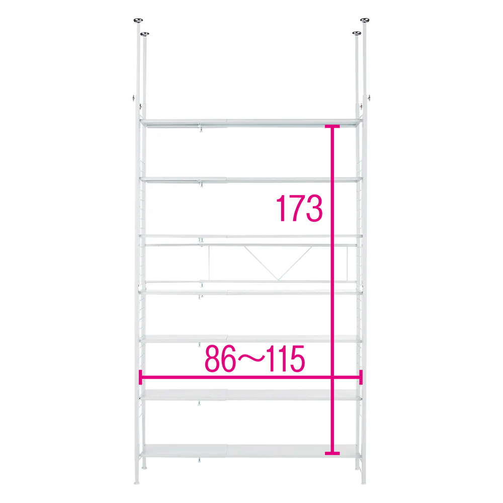 「天井に梁や柱がある…」「幅ぴったりサイズが欲しい…」そんなあなたにオススメ!幅も高さも無段階の伸縮式で、置きたいところにジャストフィットな収納を実現します。幅も高さも無段階の伸縮式で、置きたい場所にぴったり!●置き場所ちょうどサイズの収納が欲しいけれど、なかなかいいものが見つからない…。 こんな悩みにお困りの方におすすめです!●幅は無段階の伸縮式で、壁から窓の間などお好みの幅サイズに調整できます。●収納物が増えたときは、幅を伸ばせば収納力がアップします。●高さは自立した4本の突っ張りが、梁や柱などの天井の凸凹にもそれぞれ対応できます。※天井対応高さは、210〜260cmになります。●伸縮方法はネジのみなので簡単に伸縮できます。たくさんあります、こだわりの機能!●側面には落下防止用のネットが付いているため、サイドからのこぼれ落ちは心配ありません。●背面は背板がないため、コンセント前やスイッチ前でも設置できます。●棚板1枚当たりの耐荷重は約20kg。棚板裏に補強が入っています。●棚板は5cm間隔で全て可動棚。様々な大きさの収納物がしっかり片付きます。 例えば、文庫本や漫画(コミック)といった小さい書籍から、雑誌やA4ファイルなど大きな本まで 他にも、CDやDVDといったAV収納や、観葉植物やおしゃれなインテリアなどの見せる収納にも◎●脚部にはアジャスターが付いているので、がたつきを防止します。