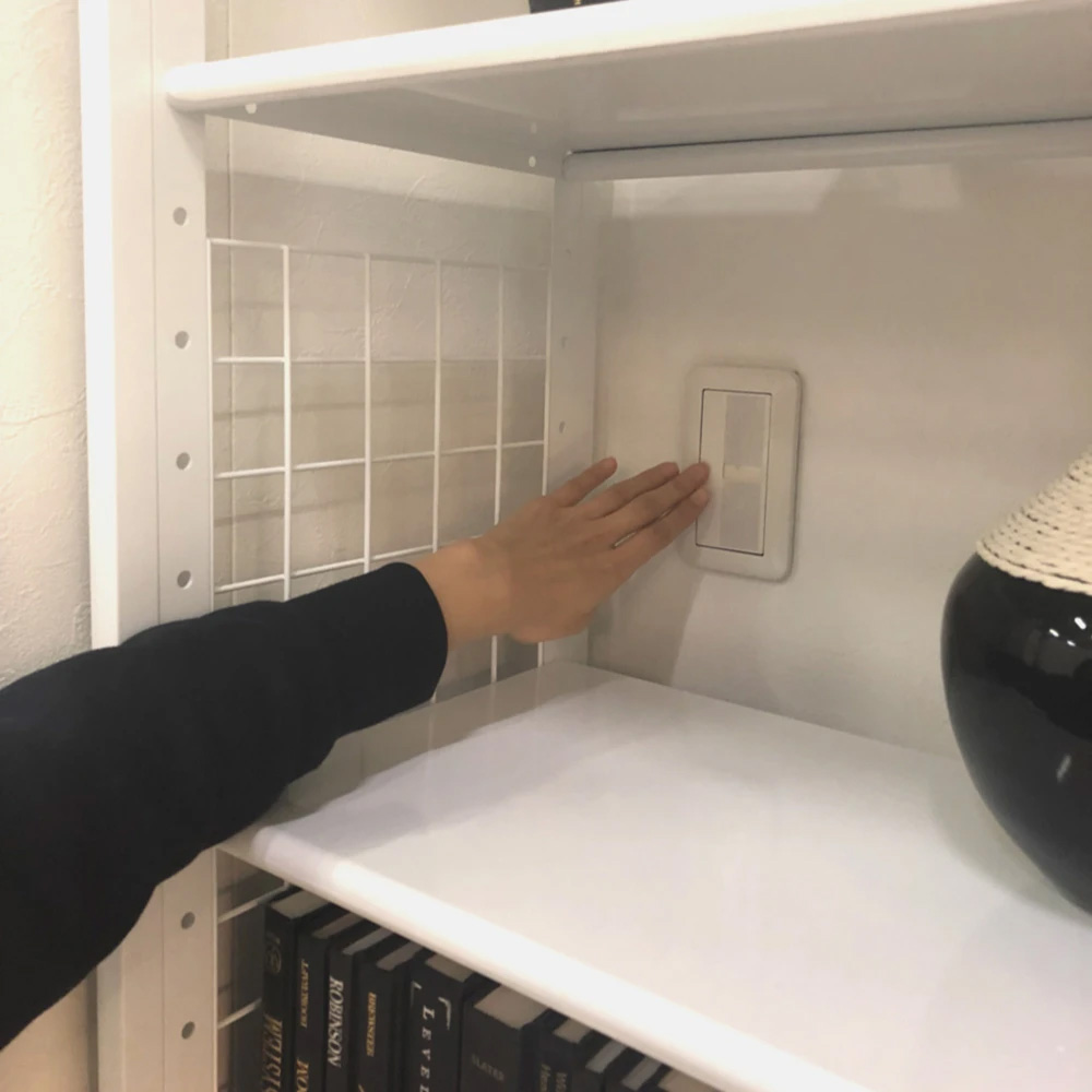 背面は背板がないのでコンセント前でもOK。スマホの充電やオーディオ機器の設置も。