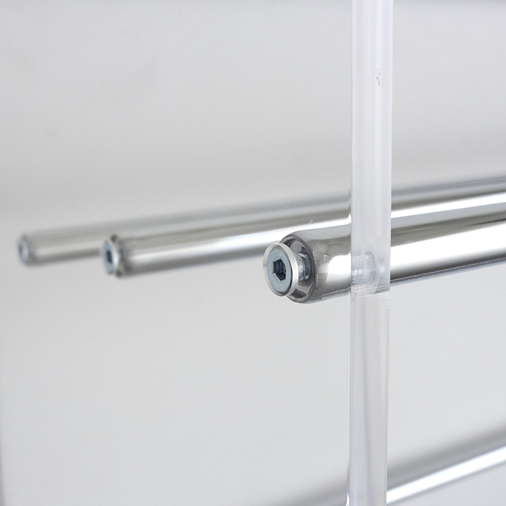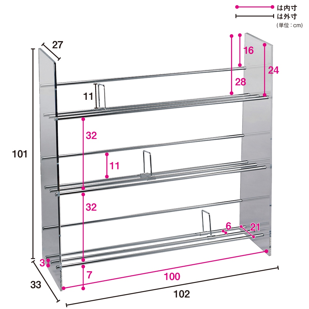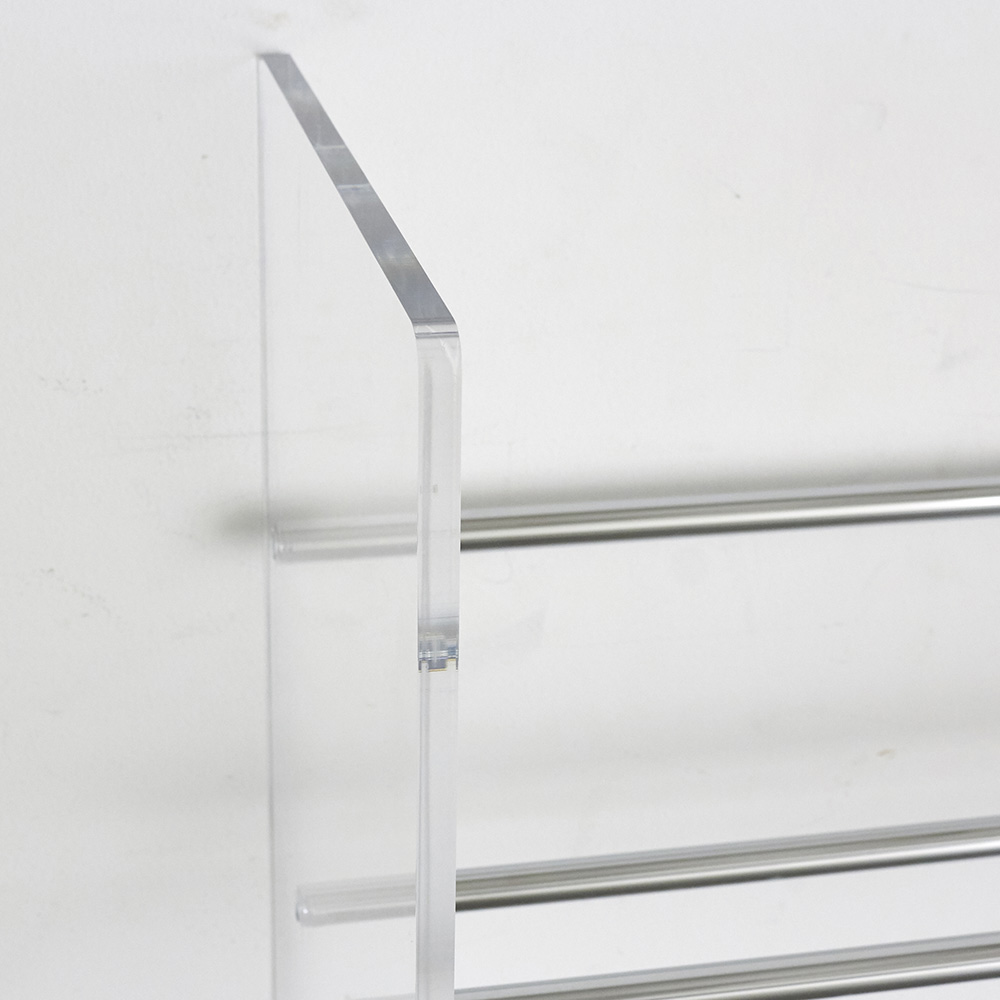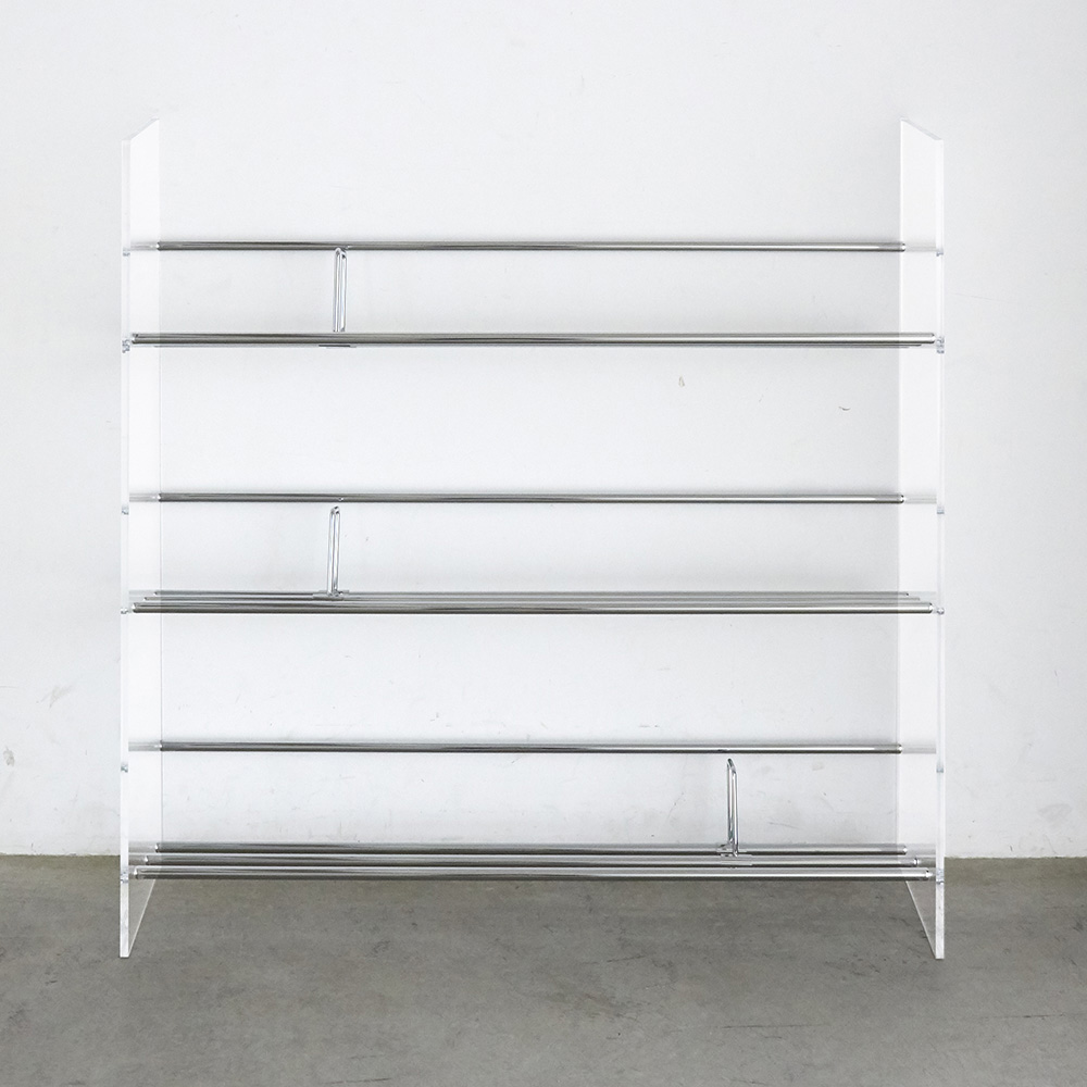 存在感を消すことに美しさを求めた、新感覚の収納スタイル。傾斜が付いた棚は、収納物を出し入れしやすく、浮遊感も際立たせます。存在感がないことの美しさ主張をしない。無駄がない。研ぎ澄ませた末に生まれる美しさがありました。本体は、クリアーアクリルとスチールパイプのみの、極めてシンプルな造り。透き通った佇まいに、収納物の浮遊感も感じられる、新しい収納スタイルの登場です。散らかりがちなブック類に、センスが光る収納を。〜素材と機能〜◆側板には透明感が美しい、10mm厚のアクリルを採用。高相性のスチールとの融合で、独自性の高いオシャレな本棚に仕上がりました。◆本体と棚がナナメに傾斜しているため、スムーズに出し入れすることが可能です。◆文庫本・CD・DVD・A4雑誌まで、幅広く対応。可動式のブックエンド付きで、しっかりと固定します。◆頑丈なスチールパイプを使用しており、高い収納性を誇ります。◆スチールパイプを側板に接合するだけの、簡単組立商品です。〜用途と利用場面〜◆デスクサイドでの本類・書類収納のための、ロータイプのブックシェルフとして。◆リビングやソファサイドでの、ちょっとしたブックラックとしてもオススメ。◆窓下収納としても活躍できる高さ設計です。◆CDラック・DVDラック・コミックラックとして、オシャレなデザインをお楽しみください。