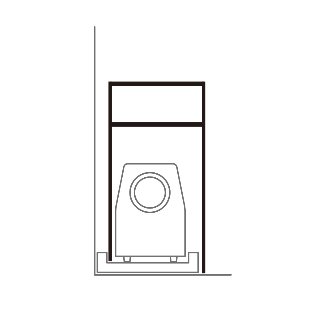 幅が調節でき、縦型洗濯機にも幅広のドラム式にも対応します。 ※写真は棚1段バスケット2個タイプです。