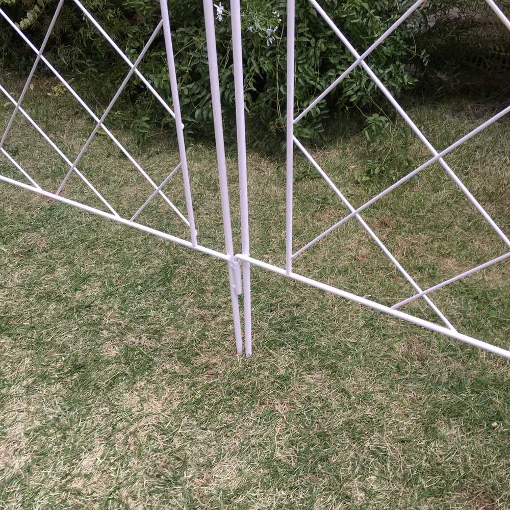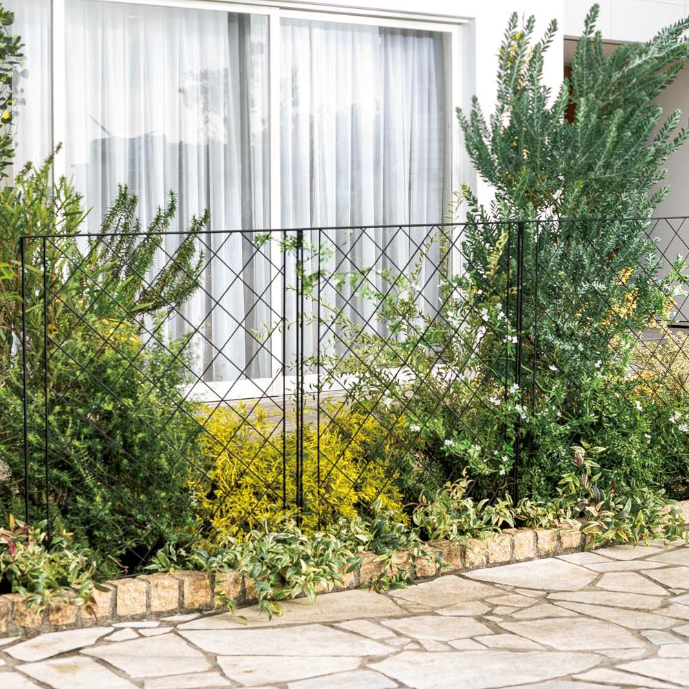 ※スチール製品は素材の特性上、経年変化でサビが発生致します。長くお使い頂くために、お届け直後の錆止め材の塗布をお薦めしております。 また、ご使用開始後も定期的なお手入れをお薦めします。(お手入れ方法&取り付け方法)隣家や通路との間を、さりげなく仕切ってくれるフェンス。挿すだけで設置可能。実は気になる隣の家や、家の前の道路との境目…■最近多い、外構のない家。■でも、隣家や通路との境目は、ある程度はっきりさせておきたい…■だけど、明らかなフェンスは、ご近所さんに嫌味な感じで設置しずらい…⇒★圧迫感のないラティスデザインのフェンスで、やんわり仕切りをしてみては?ラティスフェンスで嫌味なく境目に仕切りを■閉塞感のない、格子模様のラティスフェンスは、主張しすぎず、やんわりと境目を仕切ることができます。■そのまま使用しても、植物を這わせてグリーンフェンスにしても。■色は選べる2色。お手持ちの資材の色や、外壁の色に合わせて選んで。(おしゃれ感の出るホワイト、おすすめです!)設置は簡単!挿すだけ■施工工事がいらずに、挿すだけで設置が完了。■複数枚設置しても横の高さをそろえられる連結パーツ仕様。植物を這わせたら、見ても楽しいしきりに■アイビーを這わせたら、グリーンフェンスの完成。とってもおしゃれなお庭に。■クレマチスを這わせたら、春は香りも見た目も美しい空間になります。冬はチェーンライトを施して、光で美しく■ソーラータイプのチェーンライトをやんわりとつければ、光のフェンスの完成。■センスアップしたお庭を演出できます。