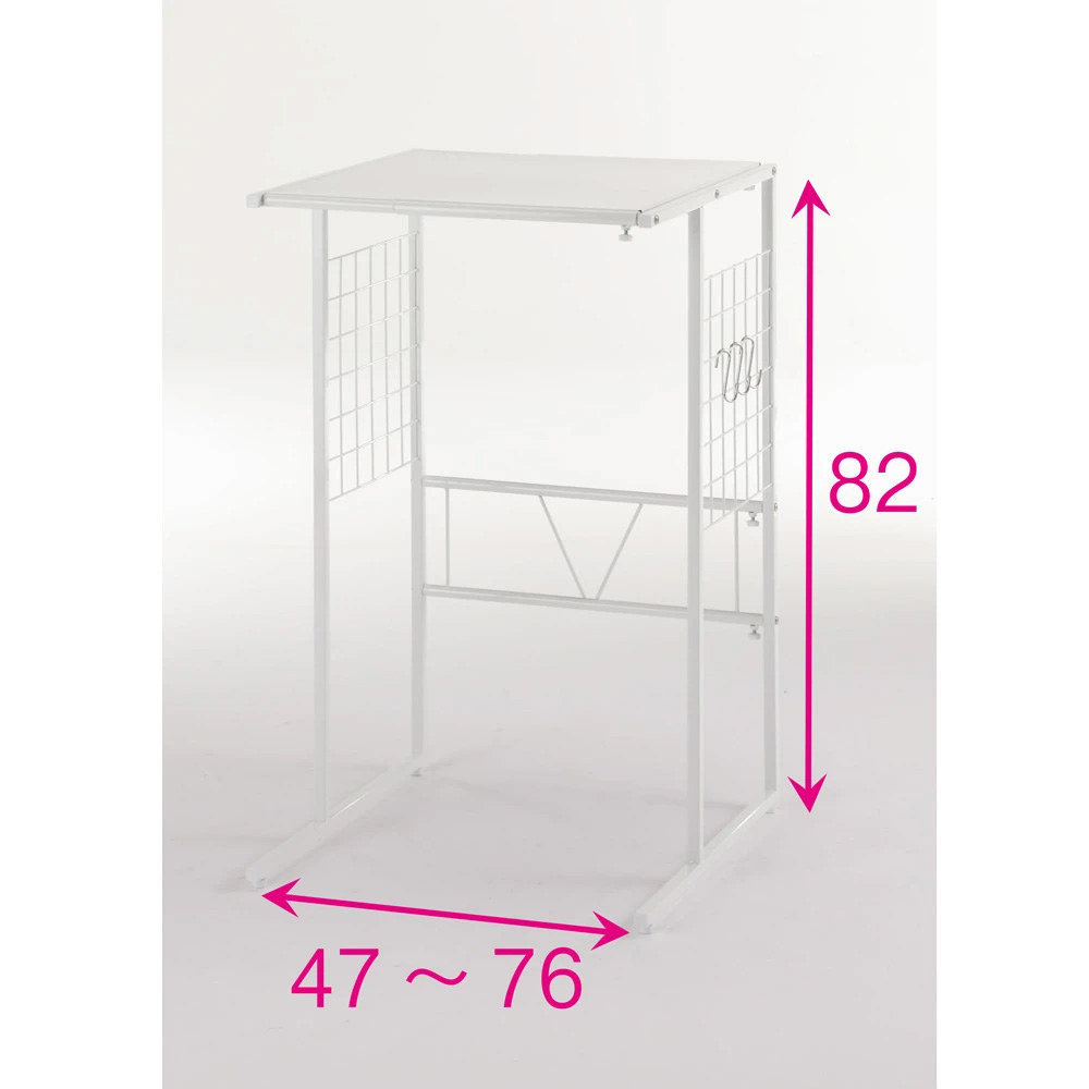 下は収納、上は作業台に。今まで使っていなかった空間を有効活用できるラックです。幅が無段階に伸縮するのでシンクと冷蔵庫の間やゴミ箱の上など、設置場所にピッタリ幅を合わせられ、スペースのムダも出しません。奥行55cmで作業台としての広さは十分。台所では調理や配膳、洗面所では洗濯物の仕分けやたたむ作業に、幅広く活躍します。空間の上も下も有効活用できる伸縮ラック●天板上は調理や配膳時の作業台に、下は飲料ケースの収納やゴミ箱置き場に、空間を上下別々の用途に活用できます。●幅は51〜80cmの間で無段階に伸縮し、置き場所に合わせてピッタリ設置できます。●今まで活用できなかったお部屋のコーナーや柱の出っ張りの前などにもスペースのムダを出さずに設置でき、有効活用できます。●高さ85.5cmでシンクと並べても使いやすい高さです。●幅サイズはツマミネジで簡単に調節できます。●天板耐荷重約25kgです。●奥行は55cmと作業台として十分な広さを確保できます。●脚部はぐらつき防止のアジャスター付き。●S字フック3個付き。サイドネットに付けるとミトンなどが掛けられます。置き場や用途に応じて選べる6タイプをご用意●シリーズ商品は、幅30〜50cmは奥行30cm・45cm・55cmの3タイプ、幅51〜80cmは奥行30cm・45cm・55cmの3タイプ、計6タイプから選べます。●幅30〜50cmタイプは省スペースで設置でき、すき間活用に便利です。●幅51〜80cmタイプは分別ゴミ箱などの上の空間活用に便利です。