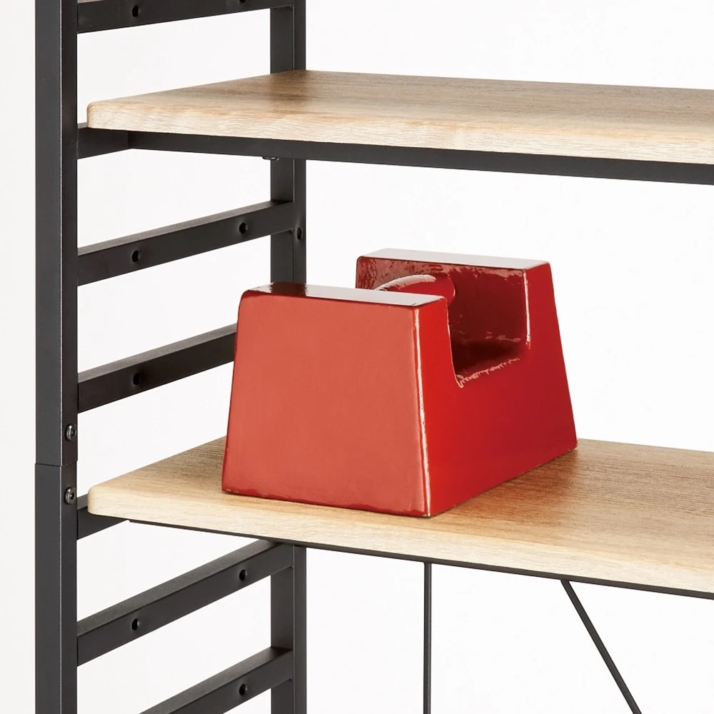 頑丈棚板と背面の補強で、安定感のあるガッシリ構造に。