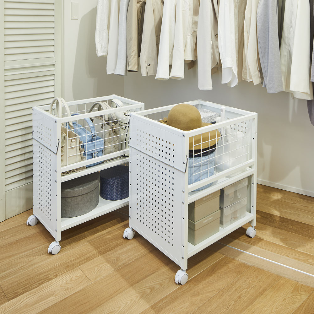 コーディネート例 奥行55cmタイプはクローゼット下の活用にも。収納したままスムーズに出し入れできます。 ※お届けは写真左の幅35cm奥行55cmタイプです。