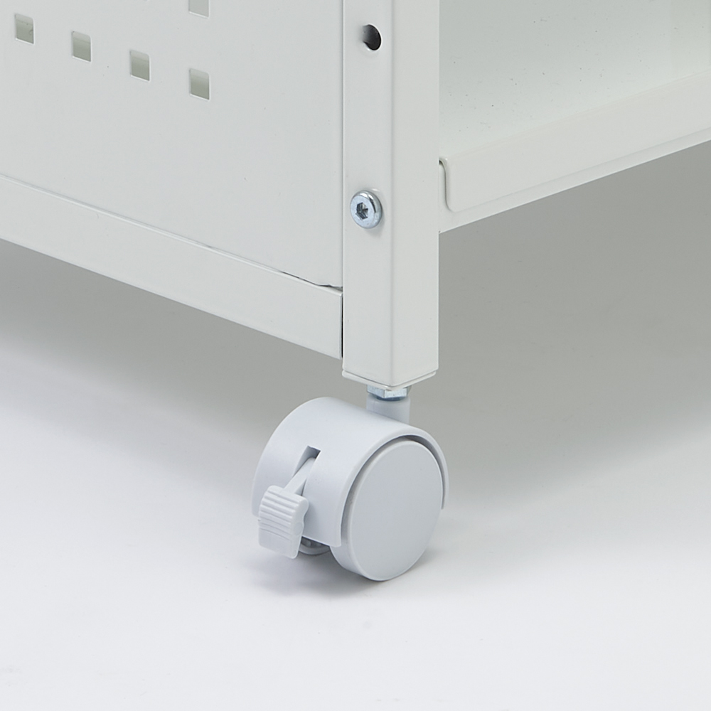 収納したまま動かせるキャスター4個(うち2個はストッパー付き)付き。