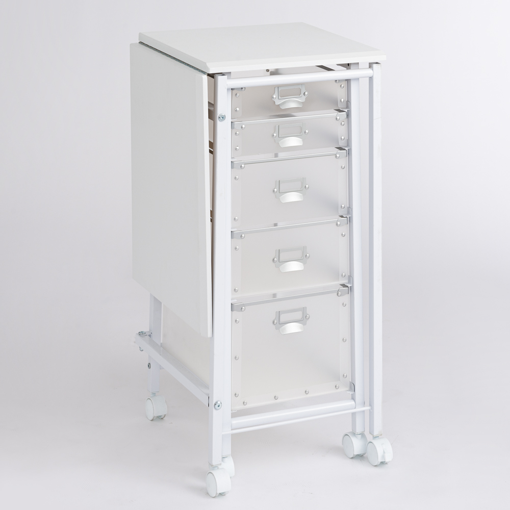 (ア)ホワイト 天板を閉じればコンパクトに。天板折りたたみ時・幅42cm。