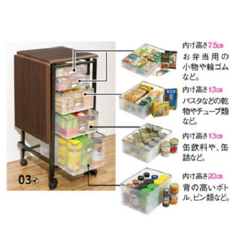 内寸高さ13cm…缶飲料や、缶詰など。