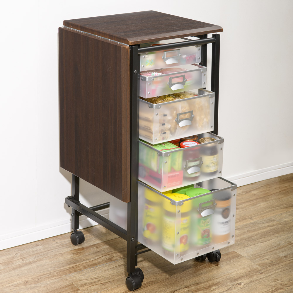 (イ)ダークブラウン 収納も作業も叶う1台2役。天板を広げれば幅90cmのワイドな作業台になります。