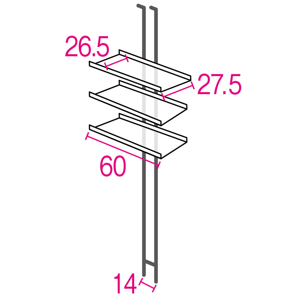 詳細図(単位:cm) 収納部はそれぞれ10cm間隔で高さが変えられます。