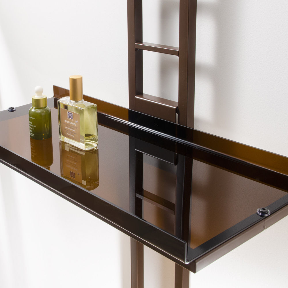 (イ)ダークブラウン 物がすっきりと置けるスタイリッシュなデザイン。光が透過するシックな色のアクリル棚。前後にこぼれ止め付きで安心。