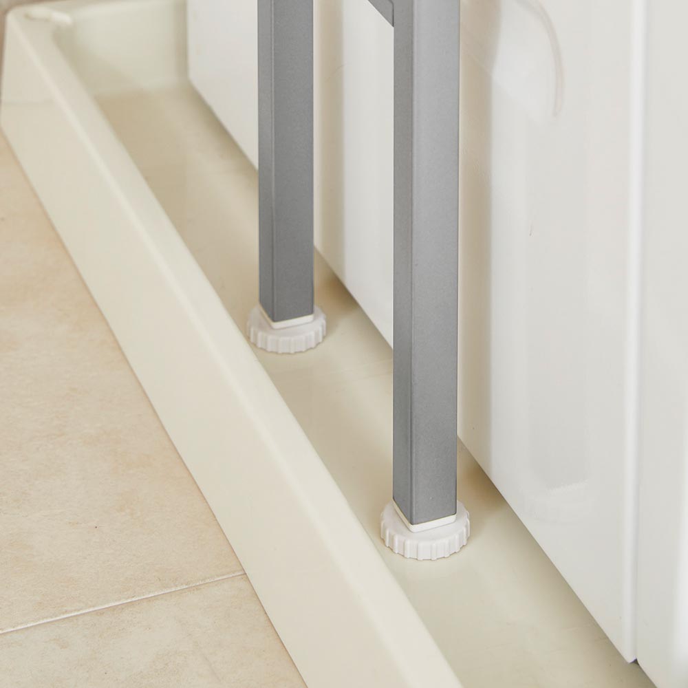 アジャスターを付け替えれば、防水パンの上にも設置可能。