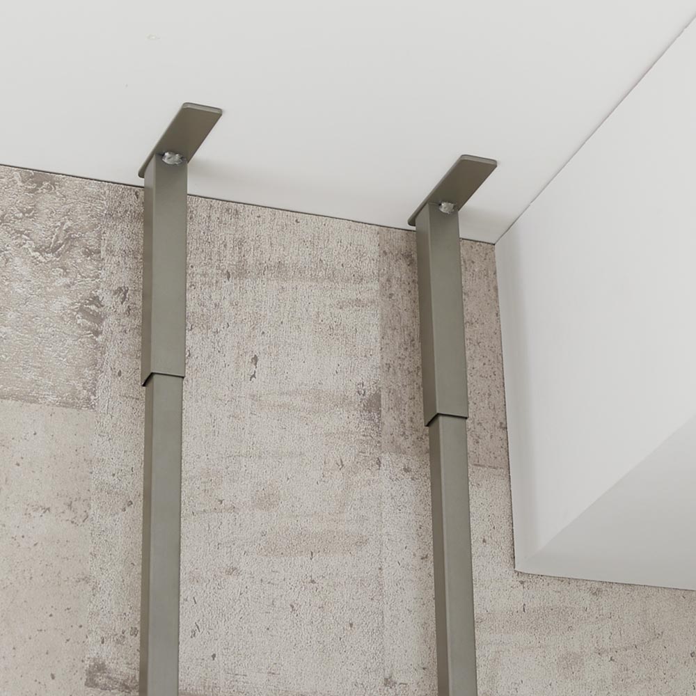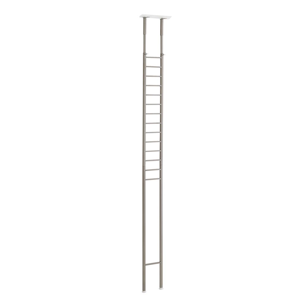 マットで落ち着いたニュアンスシルバーで仕上げた、ホテルさながらのランドリールームを演出する洗濯機上ラック。安心の天井突っ張り式ランドリーラックです。1本支柱なので様々な種類の防水パンに簡単に設置できます。圧迫感を出さずに洗面所や洗濯機まわりの収納を増やせます。※当商品は、洗濯機を動かさずにラックを設置可能です。大人の雰囲気漂う、マットなニュアンスシルバー仕上げ●マットで落ち着いたツヤ消しシルバーで仕上げた、ホテルさながらのランドリールームを演出する洗濯機上ラック。●美しく光が透けるブラウンのアクリルトレー棚と浅めのカゴ2段で、小物を分類収納できます。●ハイエンドな洗濯機にも似合う、高級感のあるラグジュアリーなデザインに仕上げました。●1本支柱の天井突っ張り式で圧迫感がなく、脱衣所に省スペースに設置できます。●置くだけでワンランク上の上品なサニタリールームを叶えます。1本脚で見た目すっきり。圧迫感のないスマートなデザイン●狭い洗面所や洗濯機置き場での設置のしやすさを考えて作った洗濯機ラックです。●アジャスターを付け替えることで、防水パン(洗濯機パン)の中にも上にも設置できます。●スリムな見た目で圧迫感を感じさせず、窓があっても採光を遮りません。支柱を設置して、あとは棚板を引っ掛けるだけでOK●女性にうれしい簡単設置&簡単組立。支柱を設置して棚板を引っ掛けるだけで完成です。●突っ張り部分はスプリング式で揺れに強く、しっかり固定できます。●洗濯機用の蛇口や、コンセントなどが避けやすいデザインも嬉しいポイントです。●天井の対応高さは210〜250cmです。ご自宅の洗面所の天井高をお調べのうえ、ご購入ください。※定期的に突っ張り部分の点検、増し締めを行ってください。水に強くてお手入れ簡単。洗濯をもっと効率的に!●水に強いスチール製のフレームなので、お手入れ簡単です。●アクリルトレー棚の奥行きは20cm、浅めのカゴの奥行きは20.5cm。洗剤類、化粧水ボトルなどの収納が可能です。