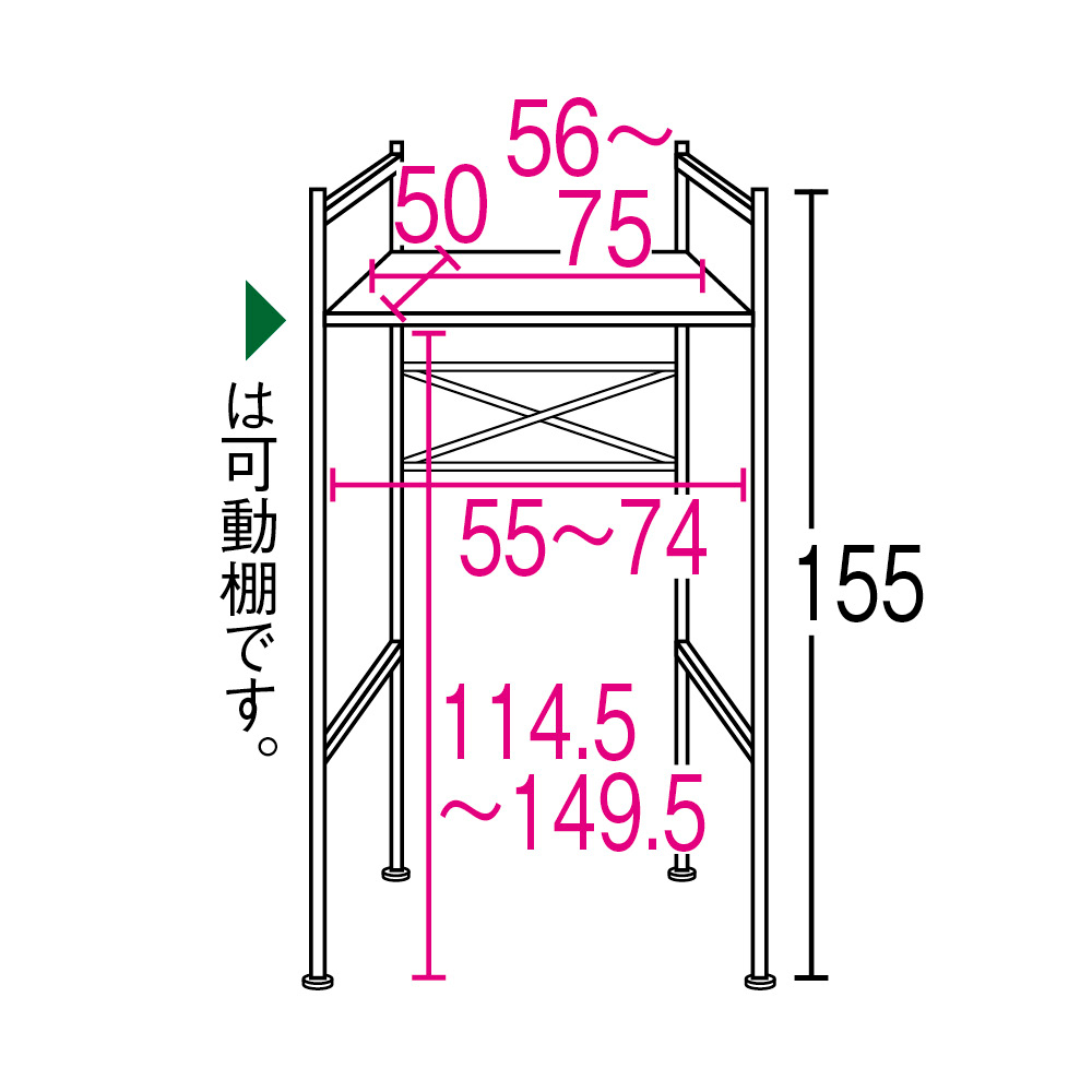 小型衣類乾燥機が置ける「サイズ」と重さや振動に耐える「頑丈さ」を両方備えたランドリーラック。小型衣類乾燥機が置ける「サイズ」と重さや振動に耐える「頑丈さ」を両方備えたランドリーラック。 ※アジャスターは最大1.5cmまで調整できます