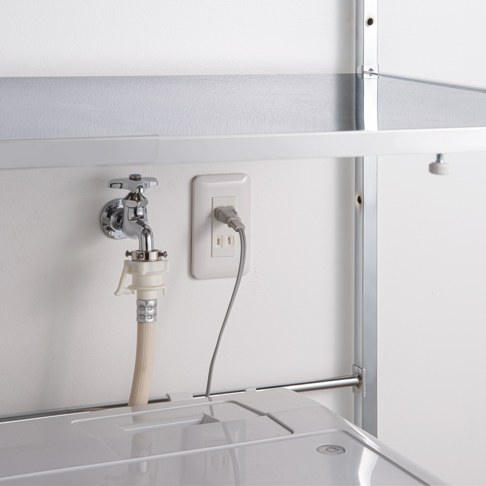 天板と背面の補強バーは高さ調節できるため、蛇口やコンセントが避けられます。