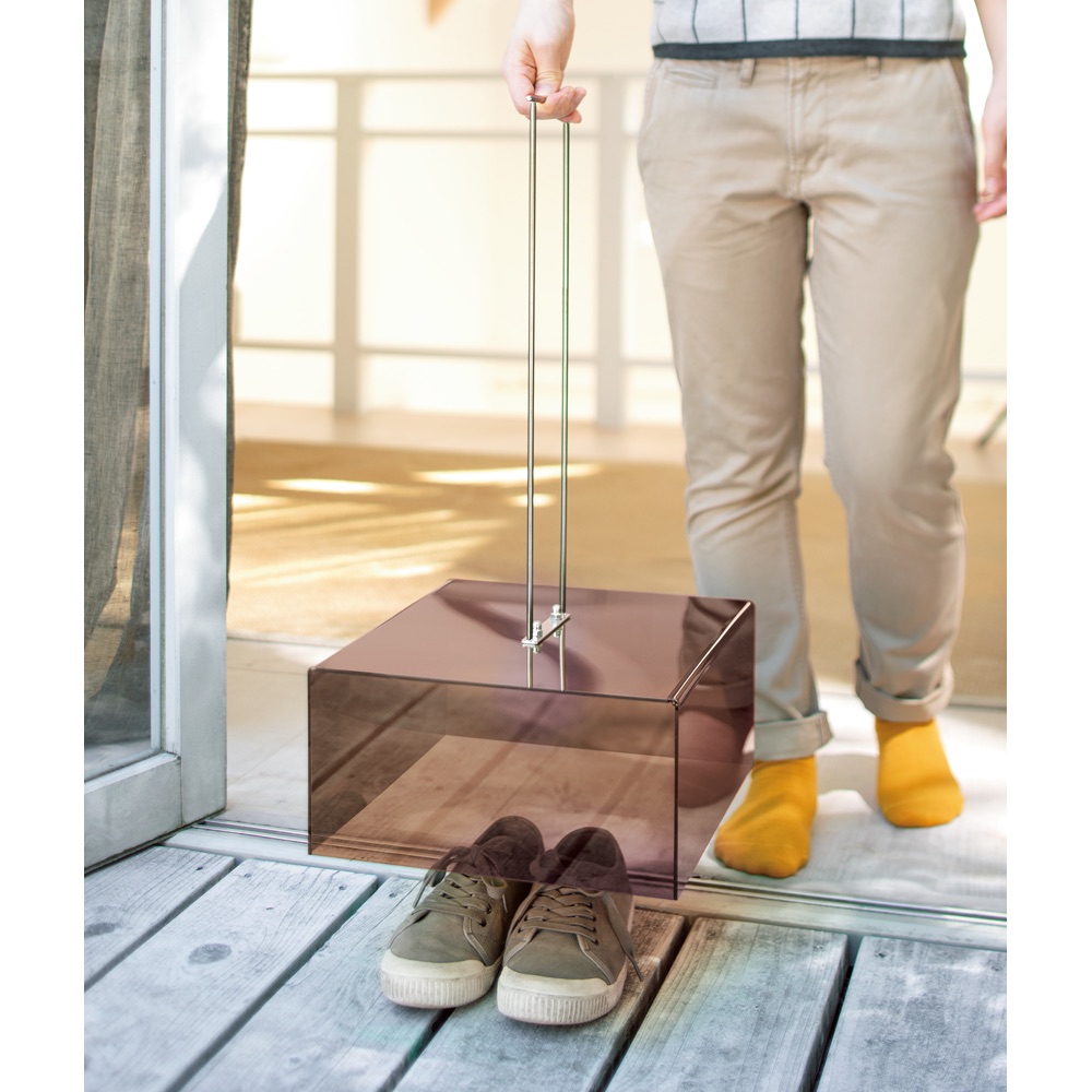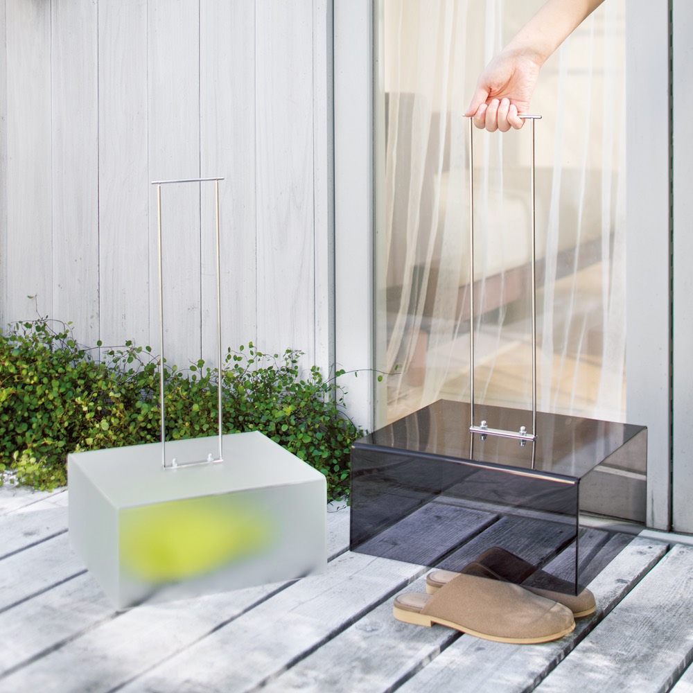 べランドの置き物を雨や汚れからガード。大きめサイズもカバーでき、腰をかがめず開けられます。◆軽くて運びやすい人気商品です!◆持ち手が長いので腰をかがめなくてもOKなサンダルカバー。◆ベランダやお庭のサンダルを土やホコリから守ってくれます。◆色はマットクリア、クリアブラック、クリアブラウンの3色からお選び頂けます。※カバーのみのお届けです。サンダルやシューズは付属しません。