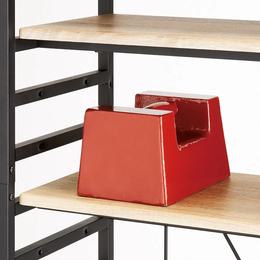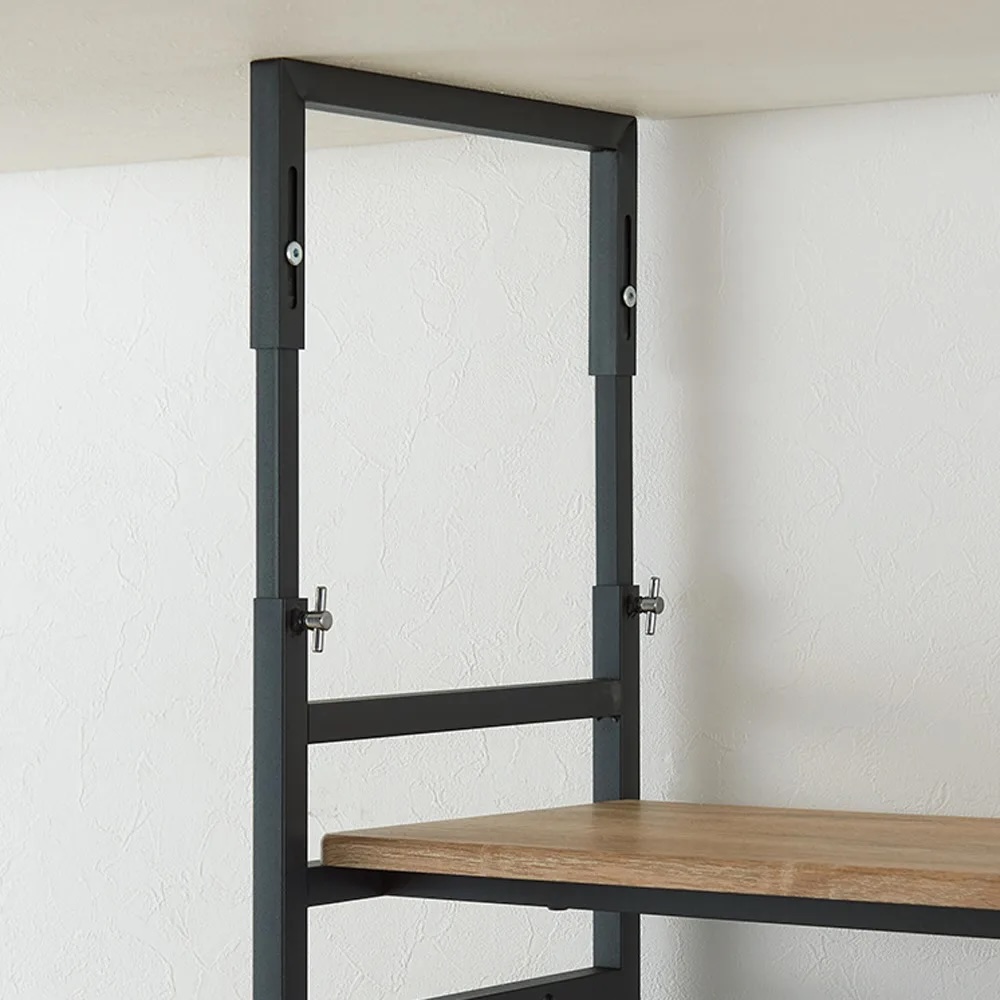【かっこよさを極立てる異素材ミックスでスタイリッシュに】スチールと木目棚板の異素材ミックスと2色使いで、ちょっと辛口のインダストリアルな雰囲気を演出。