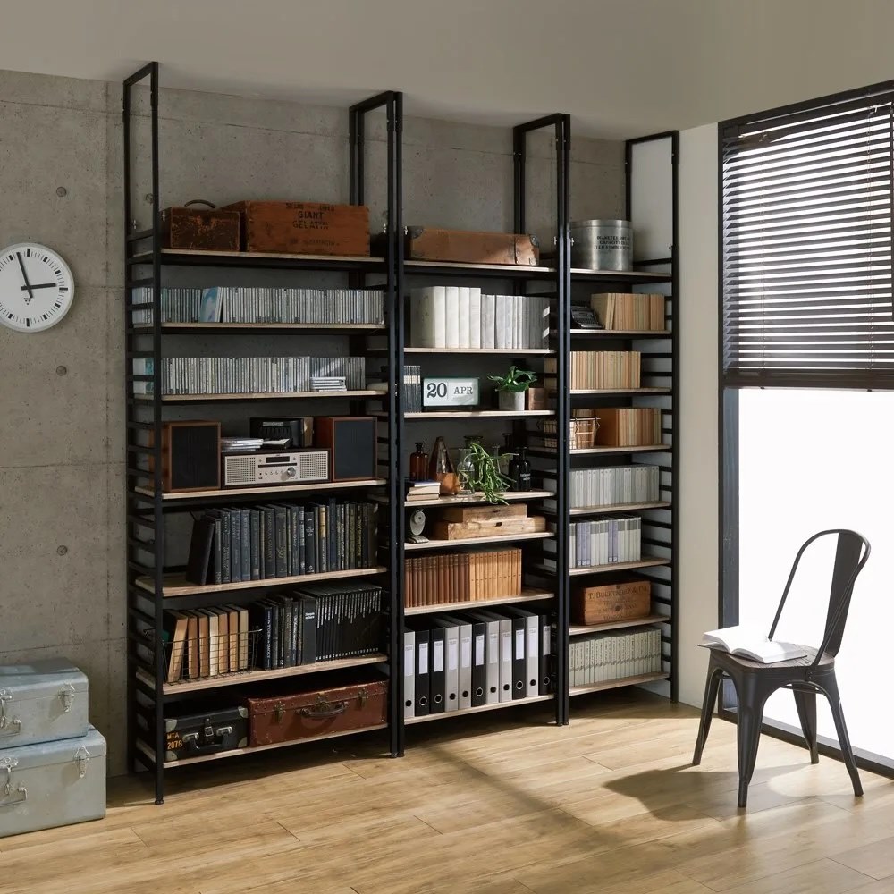 辛口ルックスの突っ張りラック。本やオーディオ、インテリアグリーンなど、壁一面にお気に入りをディスプレイ。インテリアスタイルにこだわった、ブルックリンスタイルの壁面ラックです。重厚な見た目と確かな頑丈設計ブラックスチールとウッドの組み合わせがモダンな人気の頑丈ラック!突っ張り部分のデザインなどディテールにもこだわった逸品。大量収納に耐え得る頑丈仕様で、長く使える収納ラックです。選べる奥行サイズ奥行23cm コミック・CD・小物のディスプレイに!圧迫感の無い薄型サイズ。奥行内寸18cmの棚板にはコミックや文庫本、CDの収納として便利。壁面を生かした薄型のディスプレイスペースとしても活躍。選べる奥行サイズ奥行33cm雑誌やA4ファイルボックスが納まる奥行内寸28cmの棚板。書類以外にもキャンプグッズを収納したり、玄関でシューズラックとして使用したり、幅広い用途でお使いいただけます。選べる奥行サイズ奥行43cmアンプ、スピーカー等の音響家電やリビング家電までも納まる深型サイズ。奥行内寸38cmの棚板にはレコードなども納まります。衣類の収納にもおすすめです。大量収納を支える耐荷重20kgの頑丈棚板2本の角パイプの上に棚が乗っている頑丈仕様。サイドのフレームにしっかり固定できます。安定感のある突っ張り構造天井に突っ張る構造なので安定感があり、壁一面を収納としてフル活用出来ます。耐震対策としても突っ張り構造は安心材料のひとつです。機能だけでなく、見た目にもこだわった突っ張りデザインを採用しました。効率良く収納できる可動棚仕様棚板は全て8cm間隔で可動出来るので、収納物に合わせて高さ設定できます。サイドラダーも収納として活用サイドラダーに自前のフックを取り付ければ、トートバッグや帽子、鍵など吊り下げて収納としても活用出来ます。
