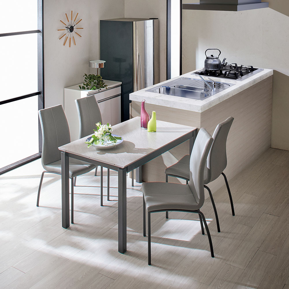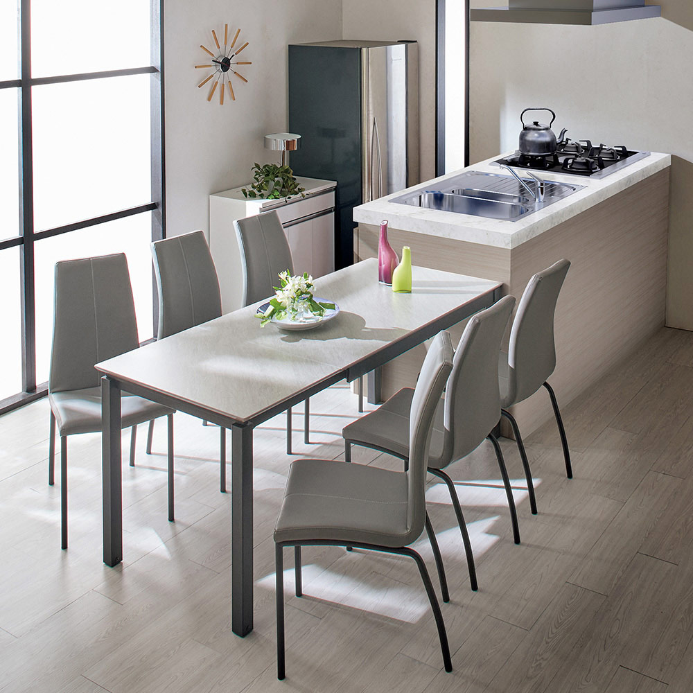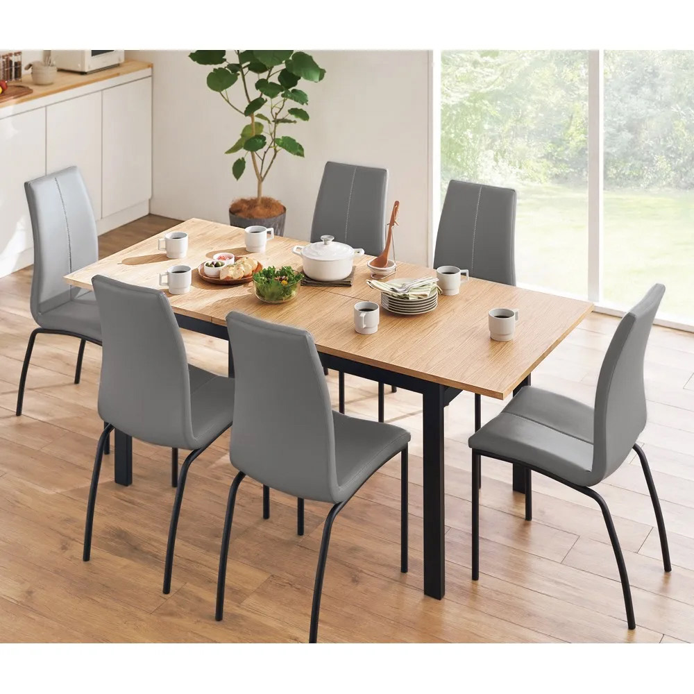 伸長式天板のダイニングで来客時や大人数での食事にぴったり。 ※お届けはチェア2脚組です。