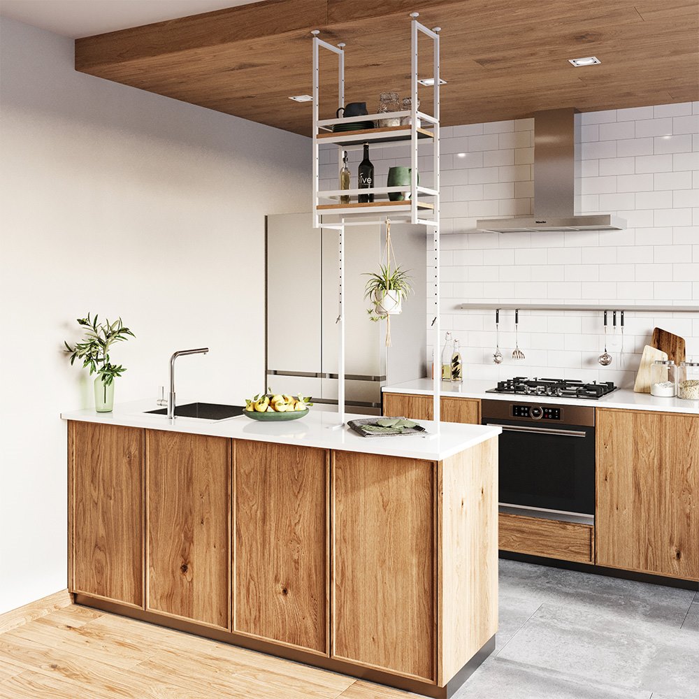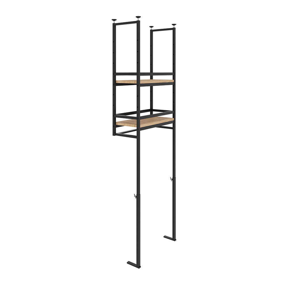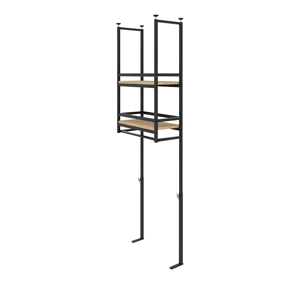 カウンター上に突っ張るだけの簡単設置で、素材感がおしゃれな棚が出現。調理グッズや食品ストックを飾るように収納でき、工事不要でリノベしたようなスタイリッシュキッチンに仕上がります。カウンター上におしゃれなオープンシェルフを簡単設置。●カウンター上におしゃれな収納棚を設置したい、という夢が簡単に叶う突っ張りラック。●キッチンのカウンターに突っ張るだけで取付完了! ●ヴィンテージな素材感が人気のブルックリンスタイルを、スチールのフレームとナチュラルな棚板で表現。●お気に入りだけを飾れば、ダイニングがスタイリッシュなカフェのような空間に変身します。●幅75cmと幅62cmをご用意しました。※このページは幅47cmの販売ページです。●フレームのカラーはブラックとホワイトの2色展開。共通の棚板にはヴィンテージ感のある仕上げを施しました。設置しやすさ、使いやすさにもこだわりました。●目立ちにくくスマートな脚部デザインと、天井にしっかり突っ張る伸縮性金具を採用。●脚部が邪魔になりにくいので、カウンターの上は設置前と同じように使えます。●2枚の可動棚板と物の落下を防ぐ前後のこぼれ止めは、使い方に合わせて設置位置を選べます(7cmピッチ可動)。●手の届く位置に調味料やキッチンツールが置けるので、作業効率がアップします。インテリア雑誌に登場するようなキッチンをコーディネートしませんか。●キッチンカウンターの上部に、収納とおしゃれなディスプレイスペースが生まれます。●カウンターのサイズや向きに合わせて、複数台組み合わせて使うこともできます。●デッドスペースになりがちな吊戸棚は不要だけれど、収納がほしいという方にオススメです。●コーヒーグッズやアンティーク雑貨、インドアグリーンなど、好きなものを並べて、あなたらしいキッチンを演出してください。●必ずご自宅の設置場所の高さを確認の上、商品をご購入ください。シリーズ商品のご案内簡単設置突っ張りカウンター上吊棚は以下のシリーズ商品がございます。・幅47cmタイプ 奥行22cm高さ125cm〜160cm ・幅62cmタイプ 奥行22cm高さ125cm〜160cm