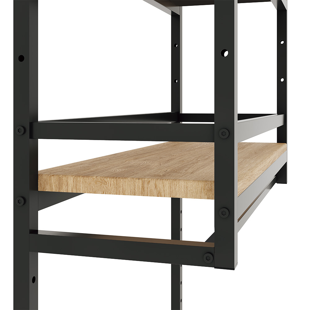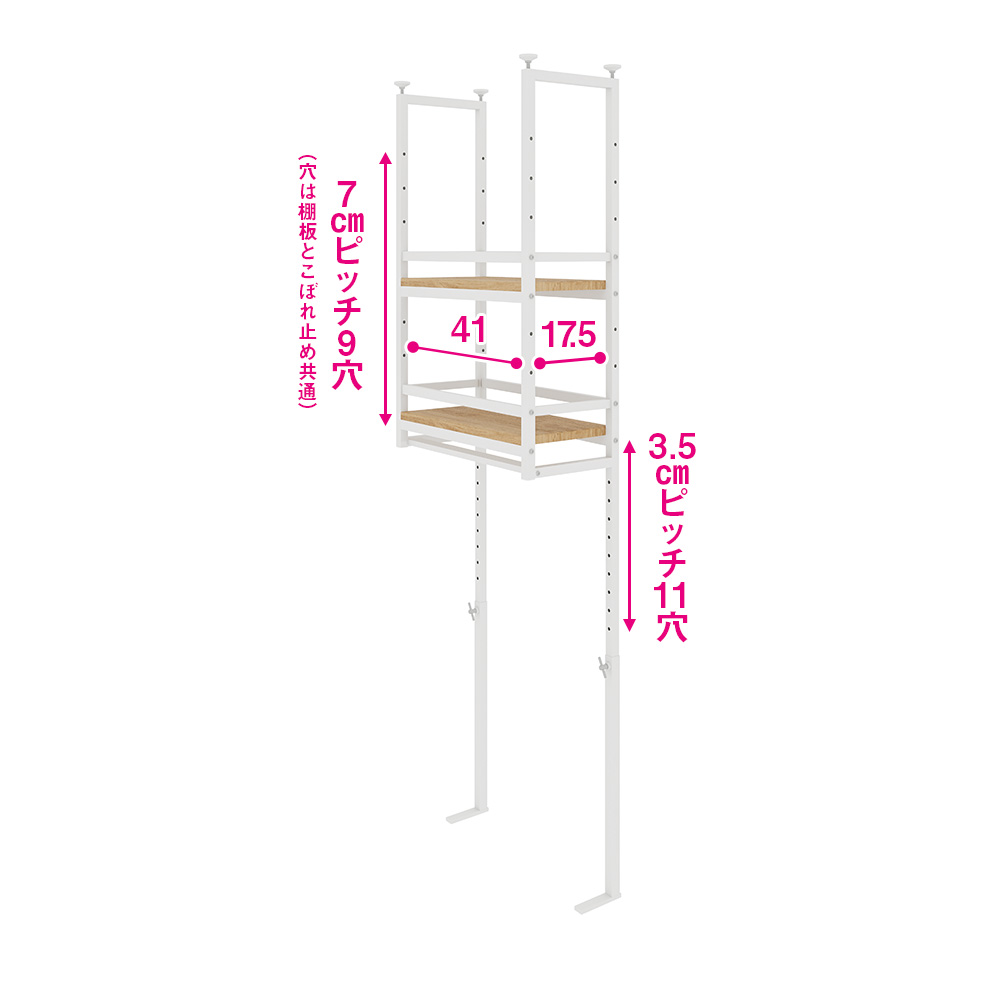 2枚の可動棚板はサイドのバーに設置。使い方に合わせて設置位置を選べます(7cmピッチ可動)。