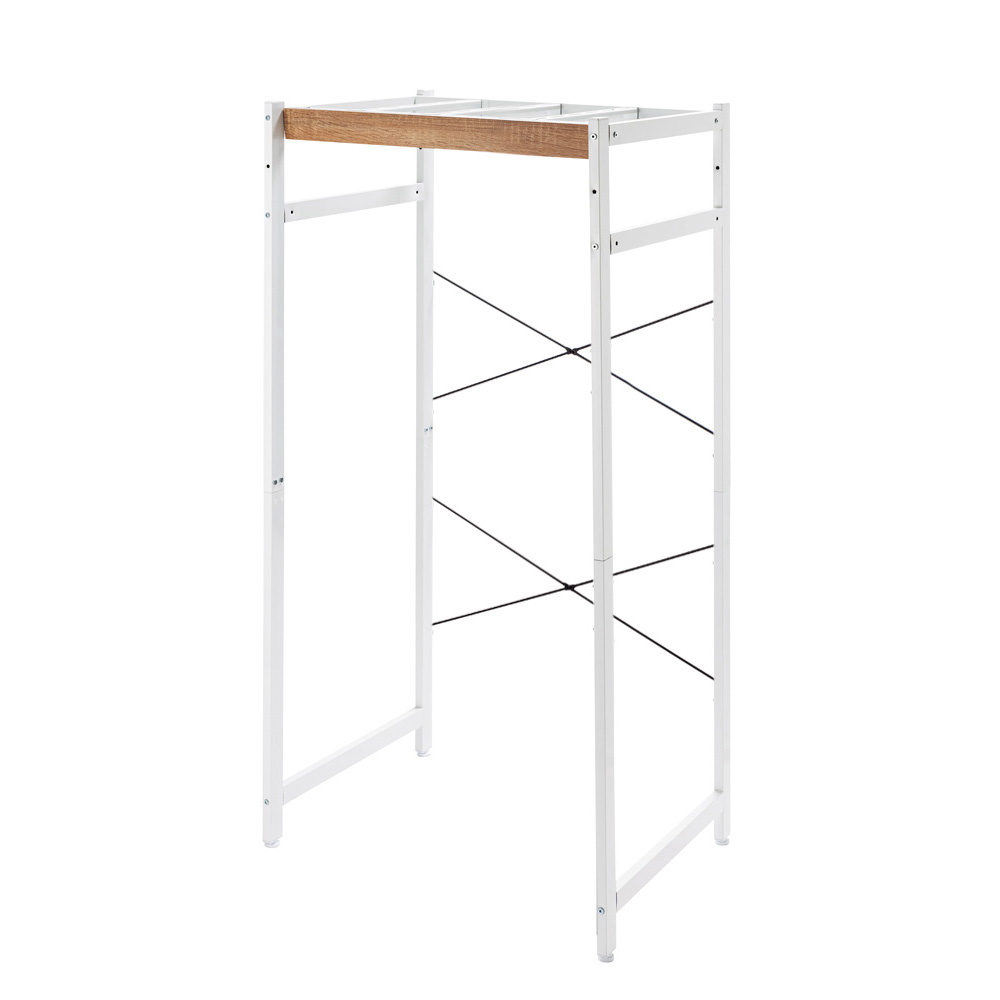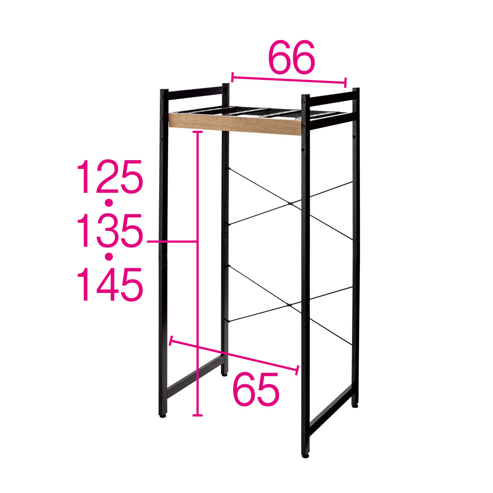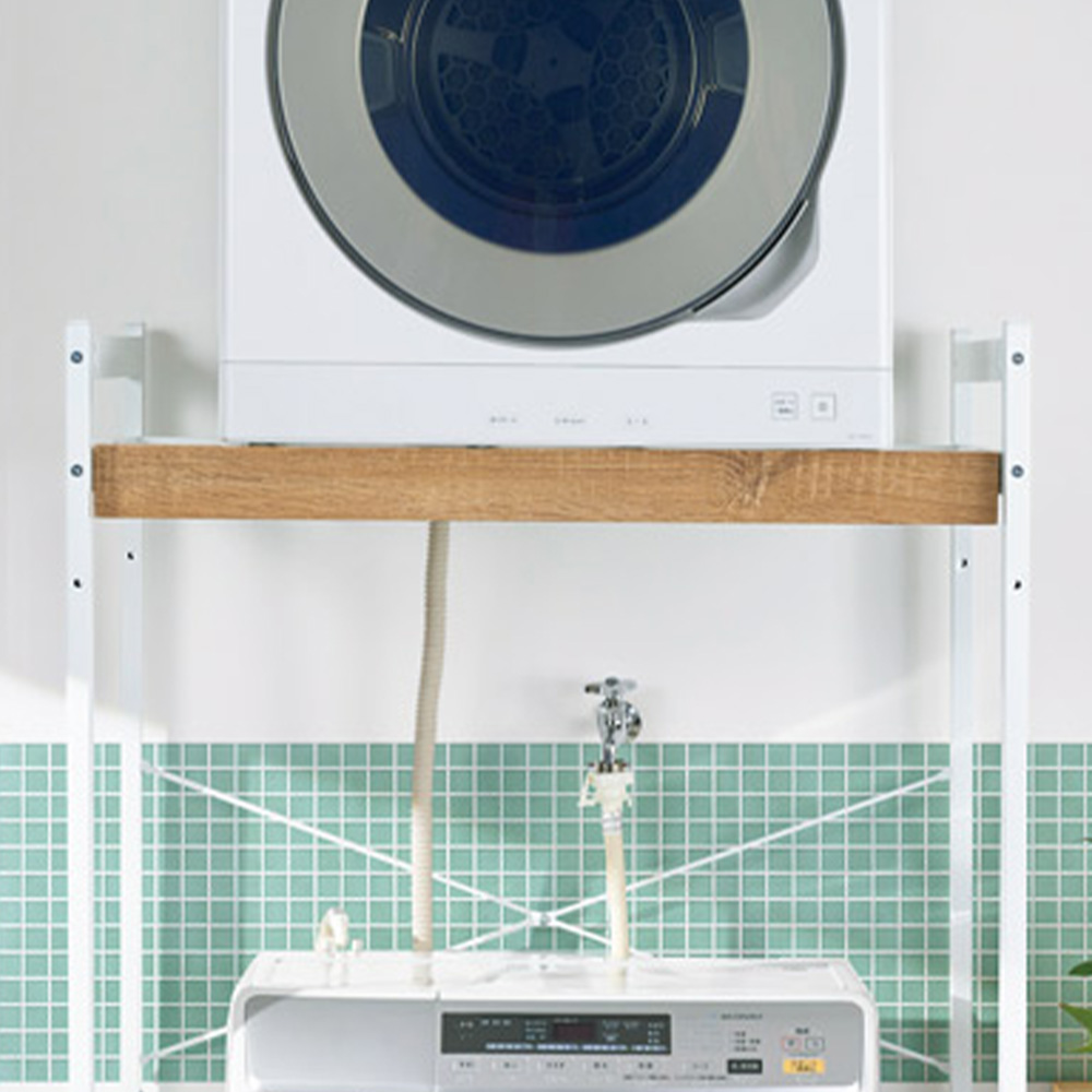 乾燥機をがっちり固定できて底面の排水ホースにも対応可能なランドリーラックです。天板がなく、衣類乾燥機を安定感のある頑丈なラック本体にしっかりネジ留めできるので、揺れにくさが段違い。前面には外観にも配慮した木目柄の幕板付きで、インテリア性もGOOD! ※シリーズ商品には「天板あり」タイプもございます。「揺れや振動に強いランドリーラックを!」という多くのお客さまの声から開発●衣類を乾燥する際の揺れや振動が気になる―。そんなお悩みにお応えして開発した乾燥機ラックです。●ラック本体をがっちりと安定感のある頑丈な構造に設計。さらに、乾燥機をラック本体に固定することで、濡れた重たい衣類を乾燥する際にも揺れや振動を低減します。さまざまな衣類乾燥機の固定に、フレキシブルに対応できるラック●固定方法も簡単。お手持ちの乾燥機の底面にある固定穴に合わせて、本体の固定バーの位置を調節し、ネジで留めるだけ。●固定バーは可動式なのでさまざまな乾燥機の機種に対応できて、これまで乾燥機メーカー純正ラック以外では難しかった固定が可能に。●乾燥機を買い替えてもラックはそのまま使えて安心です。ここが違う! こだわりの頑丈設計●耐荷重は約50kg。(耐荷重試験では倍の約100kgをクリア)。●脚部には幅2cm奥行4cmの頑丈な角パイプを使用。揺れに強い安定感を確保しました。●背面にX型の補強バーを上下2段に設けて強化。揺れにくさを高めています。天板がない仕様だから、底面の排水ホースにも対応●乾燥機設置面は枠組みのみのため、乾燥機の底面から出ている排水ホースも位置を問わず通せます。●お手持ちの乾燥機が底面に排水ホースがあるタイプで、ラック探しに困っていた方は、ぜひこちらをご検討ください。※置き型の衣類乾燥機をお使いの方には、同シリーズの「天板あり」タイプをおすすめします。洗濯機の上の空間を有効活用。狭いランドリーにも置きやすい●洗濯機の上のデッドスペースを利用して乾燥機を置けるので、これまで置き場がなくてあきらめていた方にもおすすめ。●乾燥機を床置きしていた方も、本商品ならランドリールームの空間を広く使えます。●背面の2重の補強バーの上段は、コンセントや蛇口を避けて2段階に高さ調節可能。●「幅71cmタイプ」は幅64cmの防水パンをまたいで置けるサイズです。乾燥機の設置面は高さ調節3段階。濡れた洗濯物を移し替えるのもスピーディで、家事を時短●使う人の身長や設置場所に合わせて10cm単位で3段階に高さ調節可能。●洗濯物を出し入れしやすい高さに設定できて、洗濯後の衣類も流れ作業でラクラク乾燥機に移し替え完了。●洗濯機から乾燥機までの動線が最短距離ですみ、家事の時短にも役立ちます。●ドラム式洗濯機はもちろん、蓋を開けるのに高さが必要な1枚蓋タイプの縦型洗濯機にも対応します。インテリアになじむよう、デザイン性も重視●前から見ると天板があるように見える木目柄の幕板(着脱可能)がデザインのポイント。乾燥機と本体の固定部を目隠しして、おしゃれにカバーします。●脚部の角パイプは頑丈でありながら、前から見ると幅2cmとすっきりスリム。●ランドリー空間に溶け込むシンプルなデザインも魅力。乾燥機メーカー純正のラックでは満足できない方にもおすすめです。●本体カラーは清潔感のあるホワイトと、モダンでスタイリッシュなブラックの2色からお選びいただけます。※本商品には、乾燥機の固定に使用するネジなどの留め具は付属しておりません。お手持ちの乾燥機のメーカー取扱説明書をご確認のうえご自身でご用意ください。また、天板耐荷重は設置する乾燥機の総重量(洗濯物の重さを含む)となりますので、ご購入前に衣類乾燥機のサイズ、仕様をご確認ください。シリーズ商品のご案内衣類乾燥機固定&排水ホース対応 頑丈ランドリーラックは以下のシリーズ商品がございます。※このページは天板なし 幅71cmタイプの販売ページです。・天板なし 幅71cm・天板なし 幅86cm・天板あり 幅71cm・天板あり 幅86cm