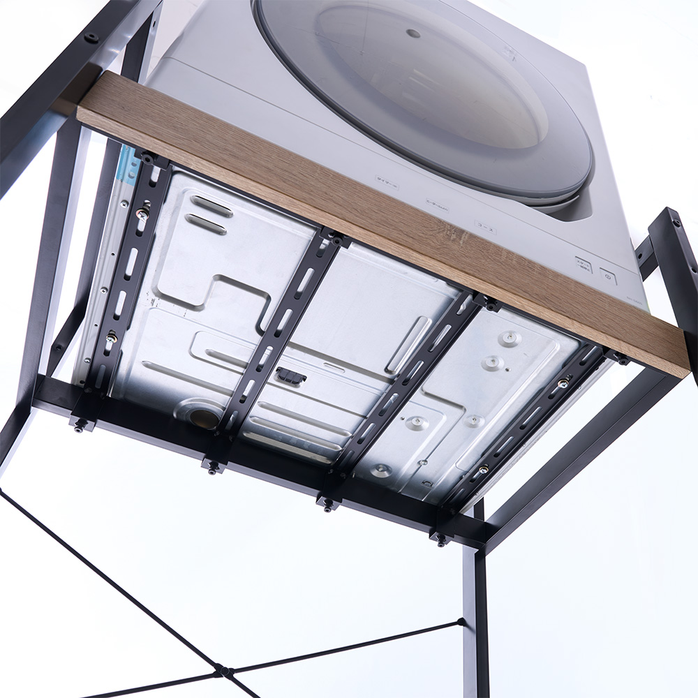 天板を外して使用も出来るので、乾燥機を買い替えても安心。上面が枠組のみの構造で乾燥機をがっちり固定できます。 ※写真は別売りの天板なしタイプになります。天板ありタイプは天板を外すと幕板も無い状態になります。