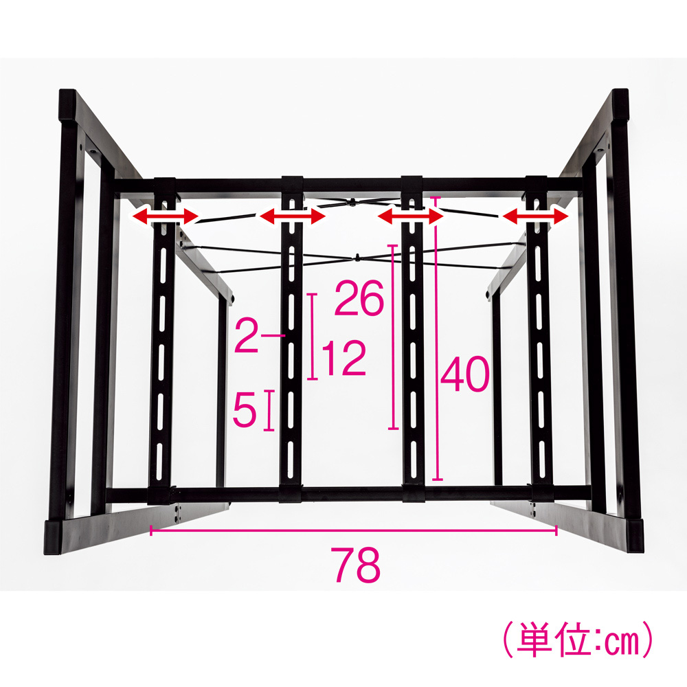 頑丈さを追求した幅2cmx奥行4cmの頑丈な角パイプを使用。