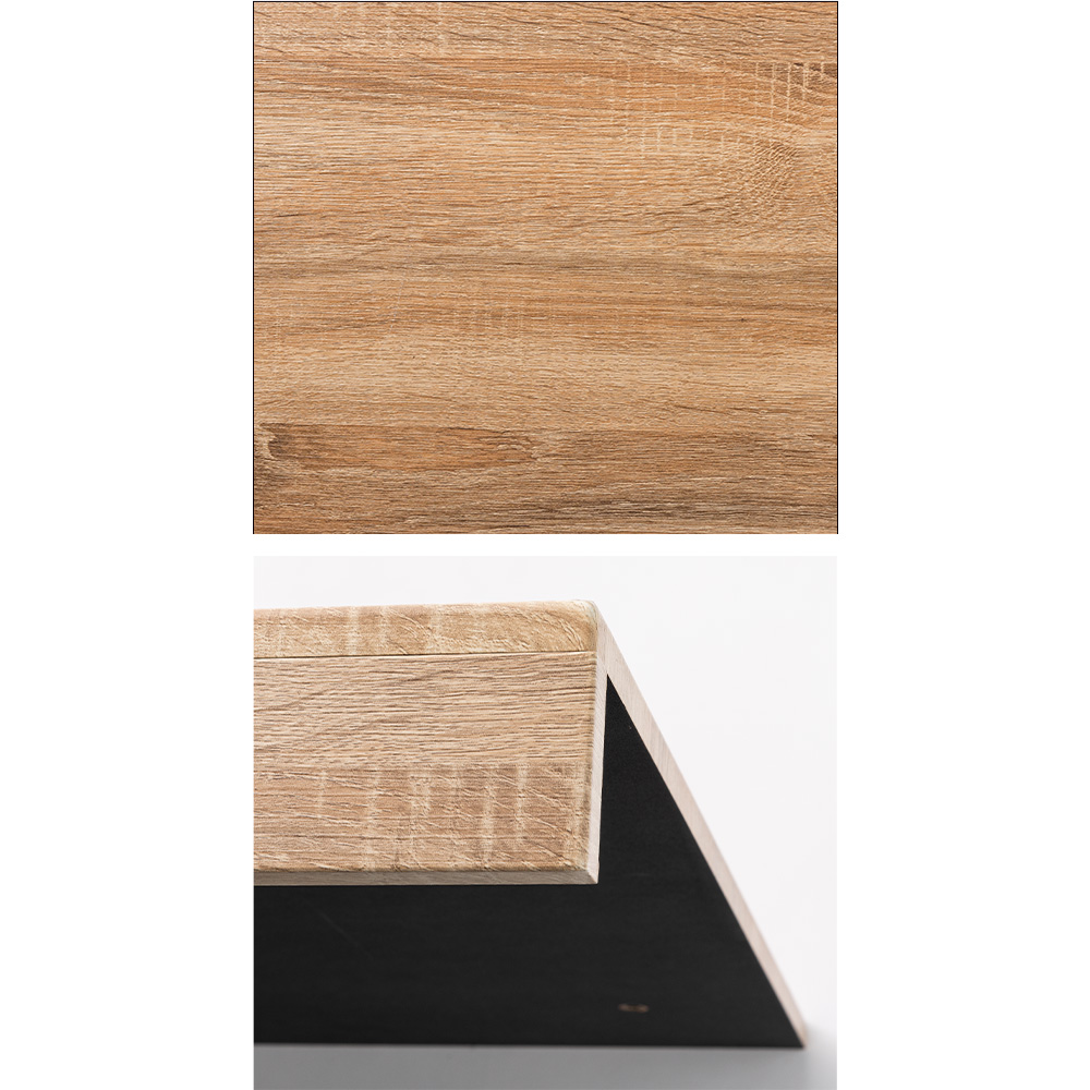 天板は幕板一体型のL型形状で、インテリアに配慮した木目柄。(ア)ホワイト (イ)ブラックのどちらも裏面はブラック色です。