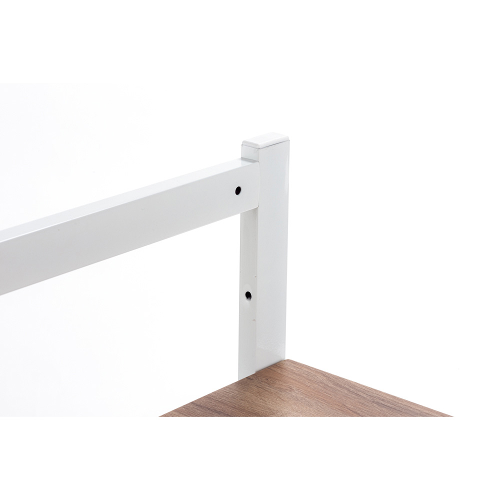 揺れを低減させるために、一般的には1つの補強バーを本商品は2つ配置して安定性を確保しています。上側は組み立て時に2段階に高さ調節できるので蛇口やコンセントを避けられます。
