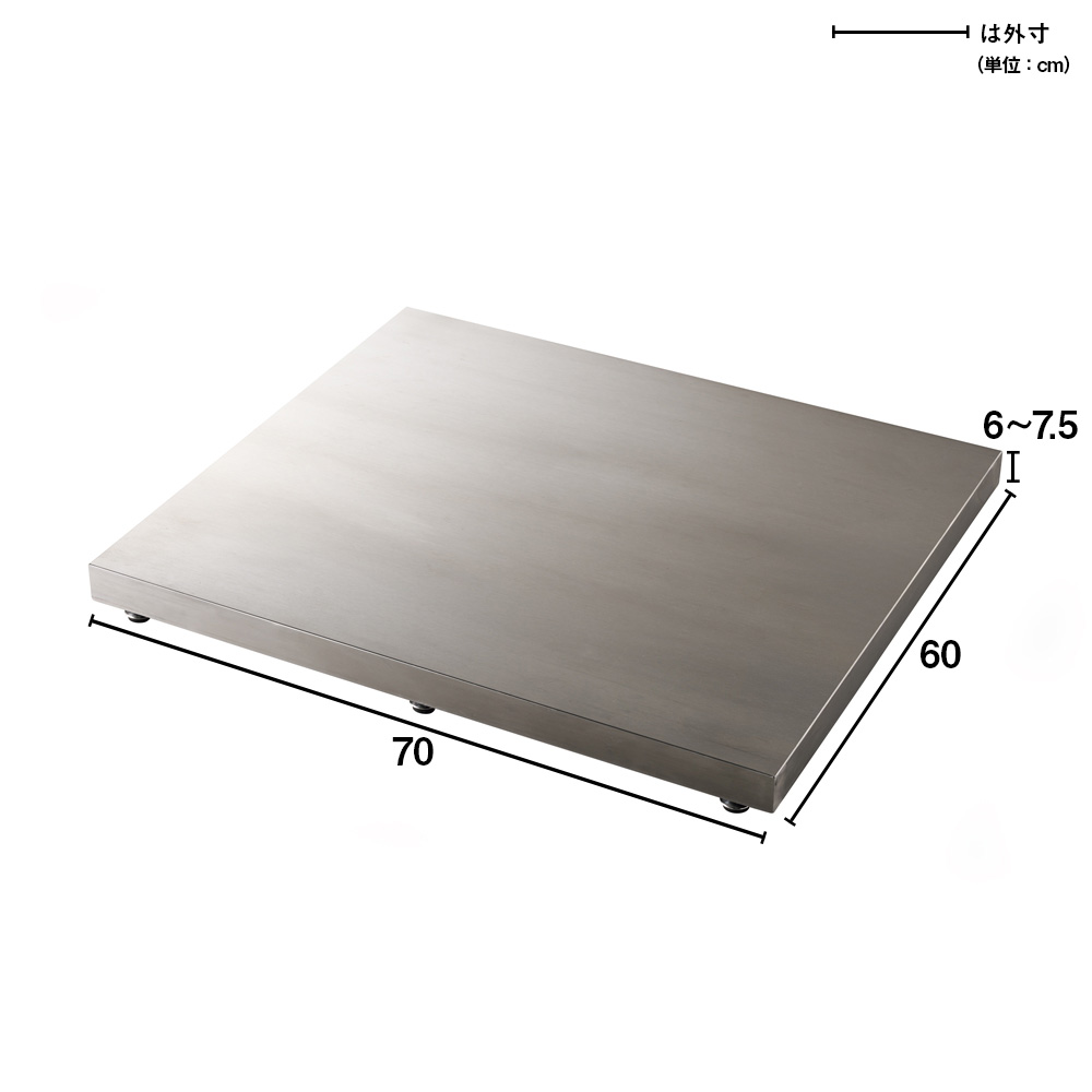 ワークトップをちょい上げできるステンレス作業台。理想と言われる高さに近づければ、姿勢も腰もこんなにラクラク!ワークトップをちょいあげすれば、毎日の作業がラクラク●置くだけで、身長に合った作業スペースが実現するステンレス作業台です。●アジャスターを伸ばせば、作業台の高さが最大約7.5cmまでアップします。●一般的に「身長÷2+5cm」といわれる理想の高さが簡単に叶います。●腰や背中、腕の負担を軽減し、毎日の作業がグンとラクになります。工事不要。置くだけで私にぴったりのステンレス作業台に●置きたい場所に置いて、アジャスターを調整するだけの簡単設置。●シンクの交換など、工事やリフォームは不要で、使いやすさがアップします。●肩がこる、腰が痛いといった、ワークトップの高さからくる不調にお悩みの方に。●ちょっと低いけれど、リフォームするほどでも…という方に最適です。力を入れる作業も思いっきりできる頑丈仕様●水や汚れに強く、耐久性の高いステンレス素材を使用。●裏面の9カ所にアジャスターを設置。均等に支えるので、安定性は抜群です。●アジャスターは滑りにくく、置き場所を傷つけにくいゴム仕様。●パンをこねたり、麺棒で伸ばしたり、力を入れる作業も安心してできます。身長差のある人とも快適に作業できます●自分は今のシンクでぴったりだけど、家族には低いというご家庭にも。●作業スペースが足りないキッチンでは、ダイニングテーブルなどに置いてもOK。●お菓子やパンを作るのが趣味という方にもオススメ。●スペースに合わせて、60cm×55cmタイプと70cm×60cmタイプから選べます。シリーズ商品のご案内毎日の作業姿勢が楽になるステンレスかさ上げ作業台は以下のシリーズ商品がございます。※このページは幅70cm奥行55cmタイプの販売ページです。・幅60cm奥行55cmタイプ・幅70cm奥行60cmタイプ