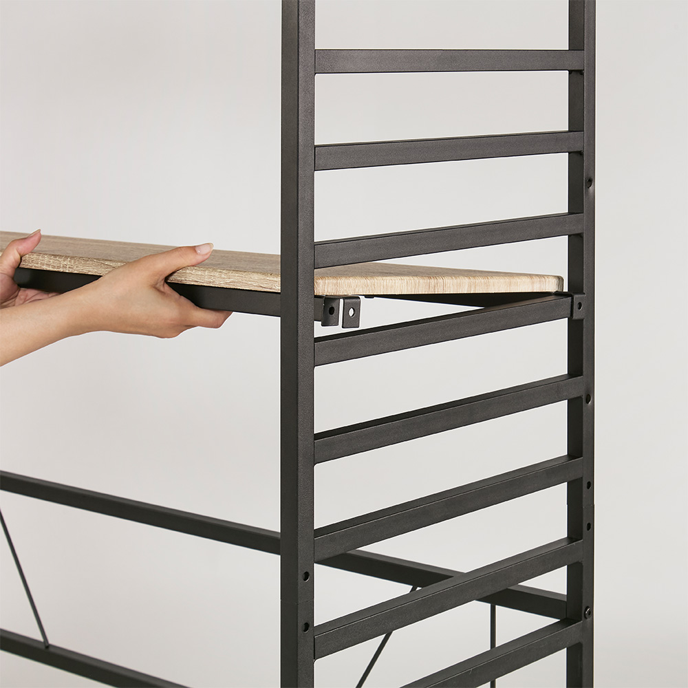 棚板はサイドフレームに引っ掛ける仕様なので、設置後も収納物に合わせて8cm間隔で高さを変えられます。