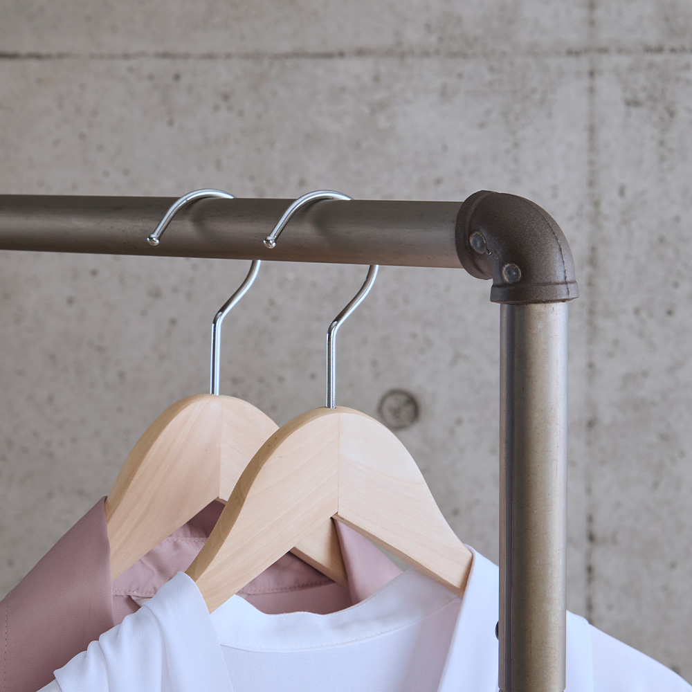 ガス管をイメージしたヴィンテージ風デザインで、まるでショップの什器のような演出ができるハンガーです。