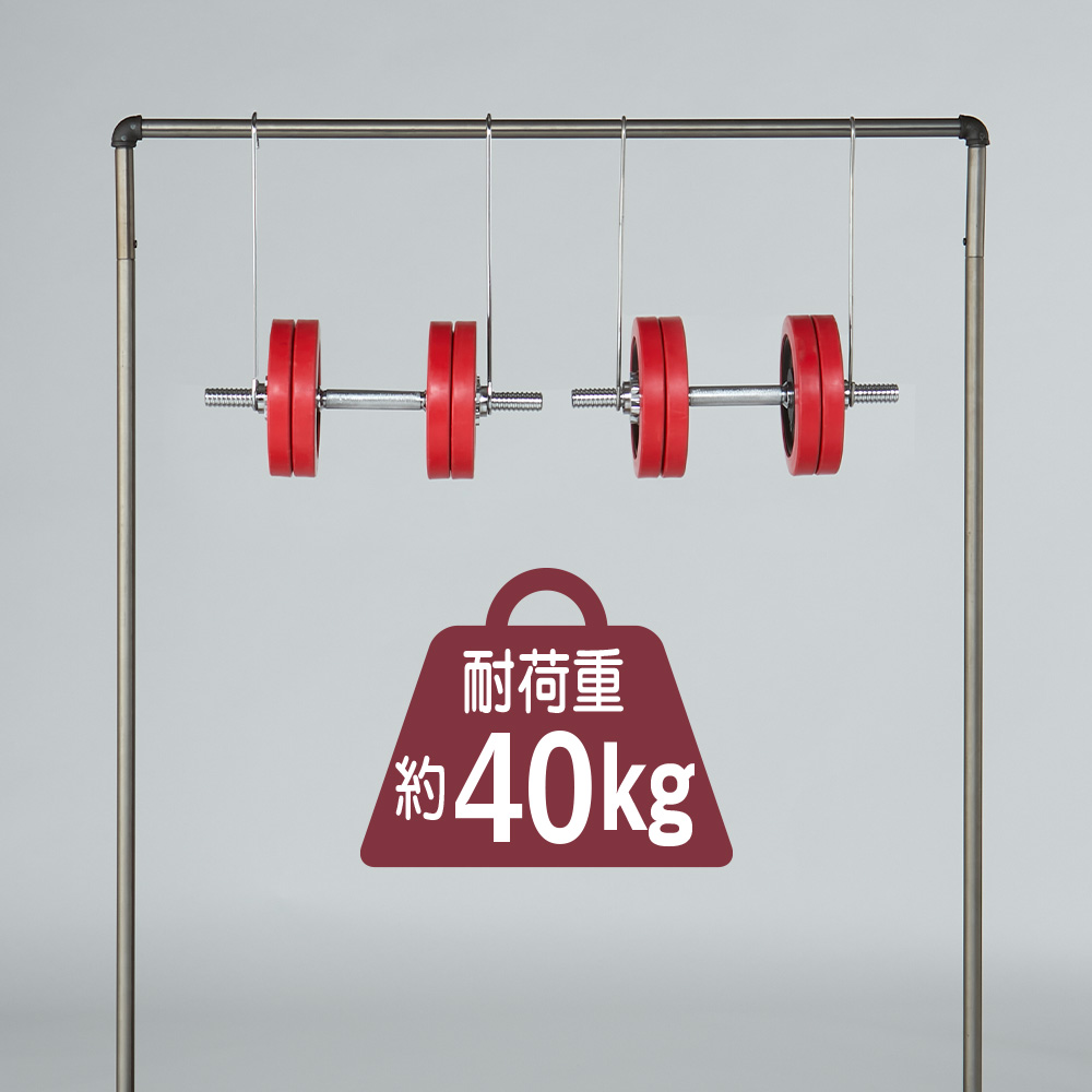 ハンガーバー耐荷重は1本あたり約40kg。たっぷりかけられてスペパアップ!