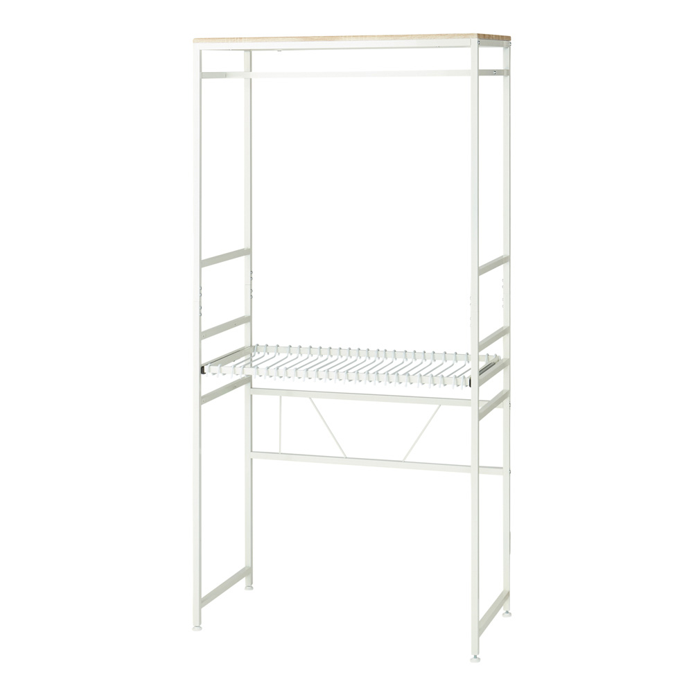 (ア)ホワイト 1台でトップスとボトムが収納できるハンガーラック。狭いお部屋でも最大限に空間を活かせます。