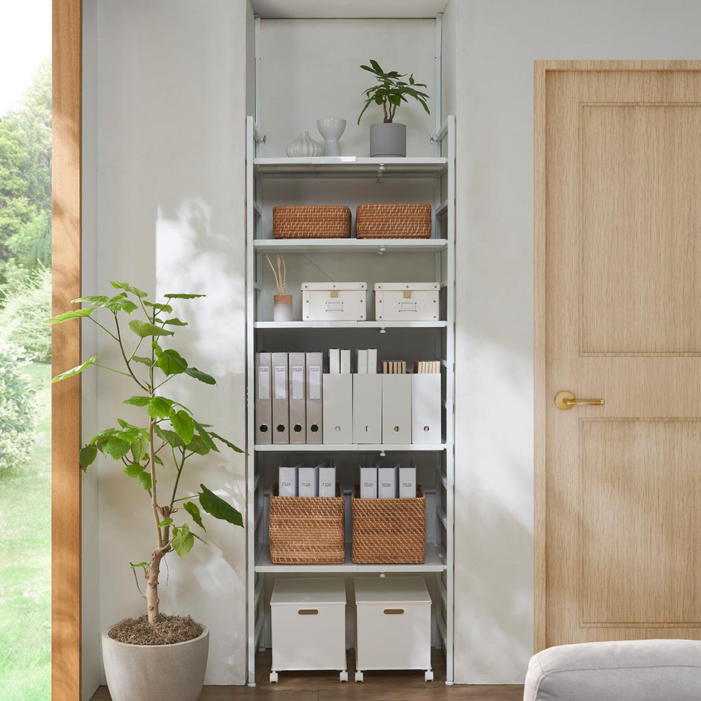 • 棚板も幅伸縮するのでオーダーしたような空間が完成します。