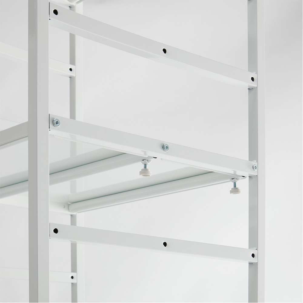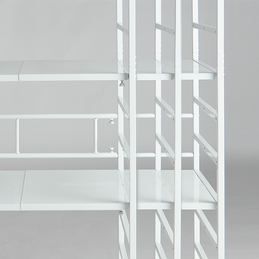 棚板の幅伸縮は、棚の裏にあるねじ調整だけで簡単にできます。