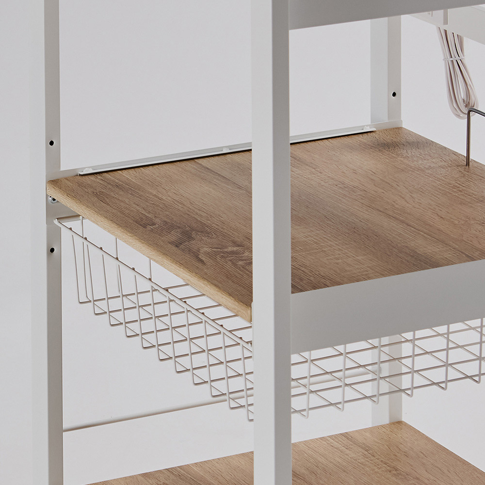 (イ)ホワイト 総耐荷重約84kg(最上段10kg・上から2段目の天板35kg・スライド棚12kg×2枚・バスケット5kg・可動棚10kg)の頑丈さが自慢!