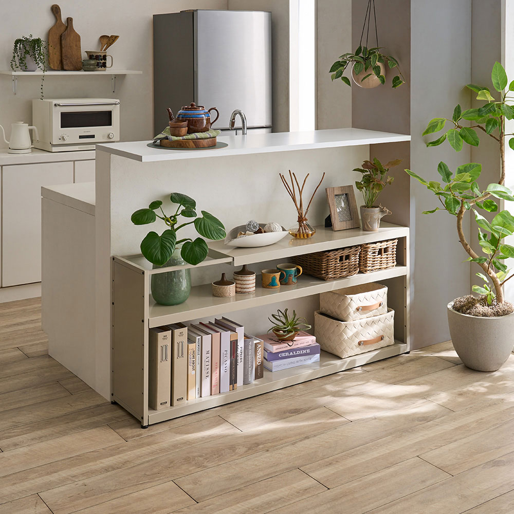 棚板がスライドする伸長部が目立たないすっきりしたデザイン。