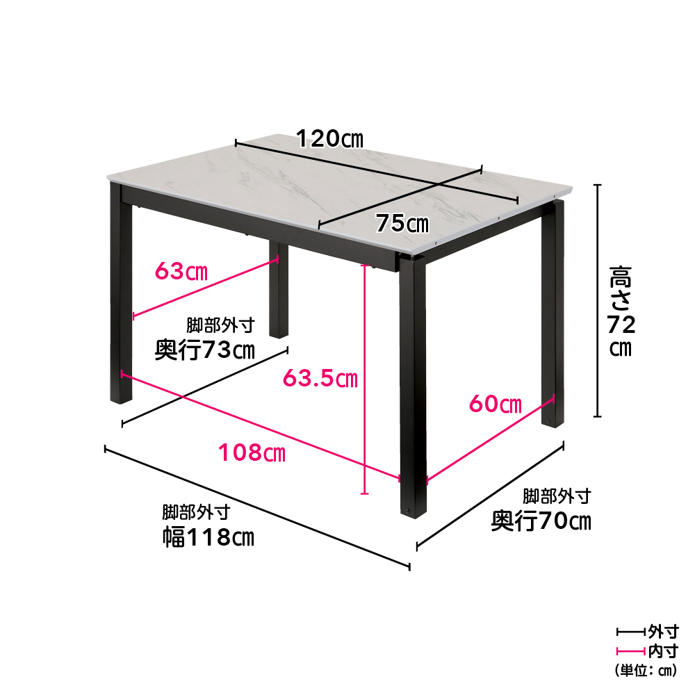 詳細サイズ(テーブル通常時・幅120cm) (イ)ホワイト系