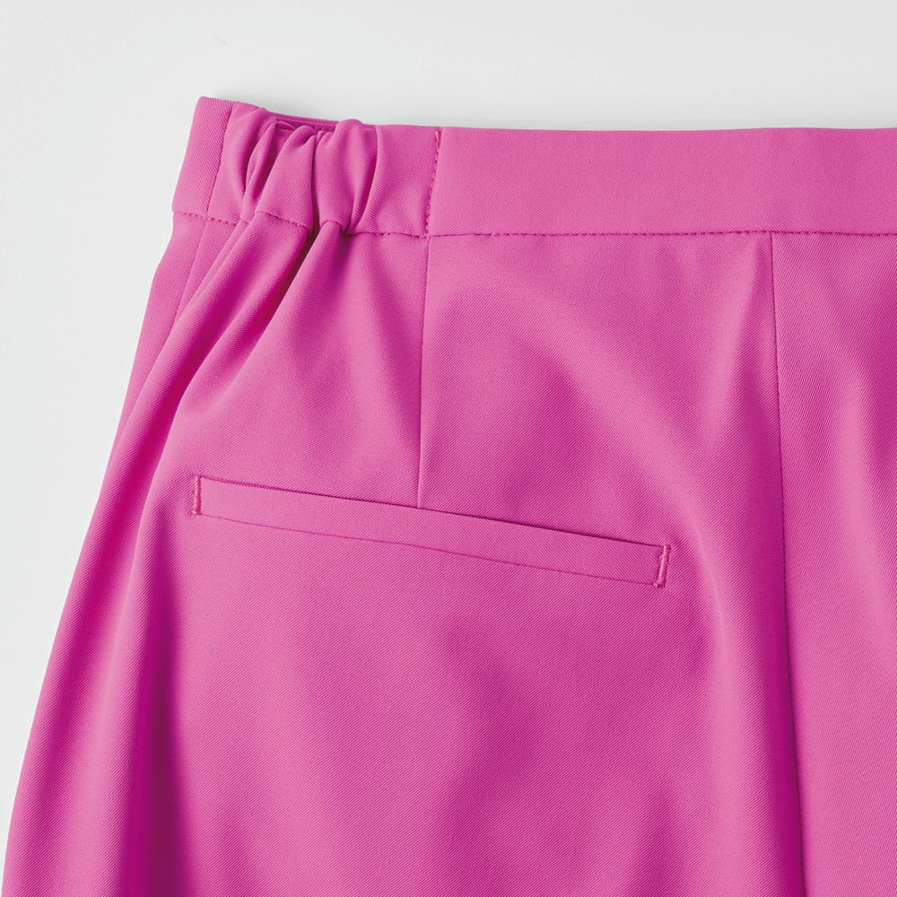 (ア)フューシャピンク 斜めに配した飾りポケットで、ヒップ位置を高く見せる工夫をプラス。