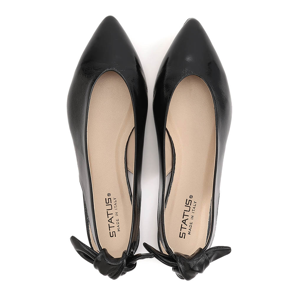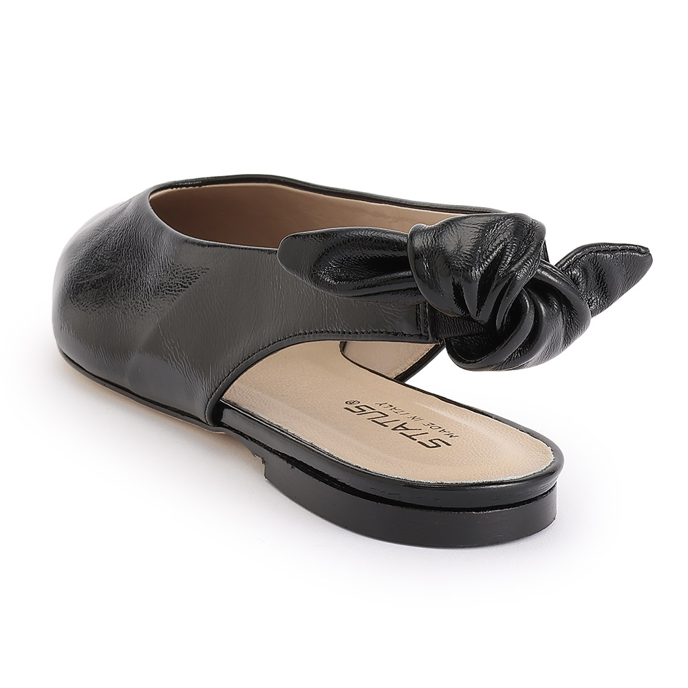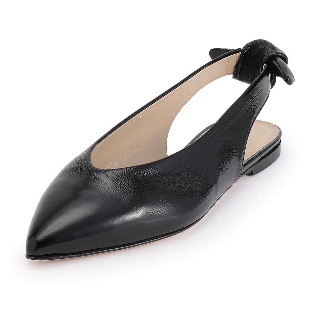日常に、機能性と美しさを。リボンを外せば辛口になる「大人のフラットパンプス」バックリボンなしでプレーンなスタイルも楽しめるチェンジャブルなフラットパンプス。足を包み込むカッティングや、柔らかなキッドレザーにシワエナメル加工を施した、こなれた雰囲気も好印象。