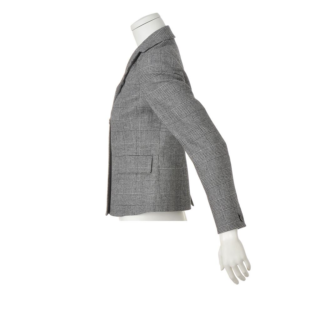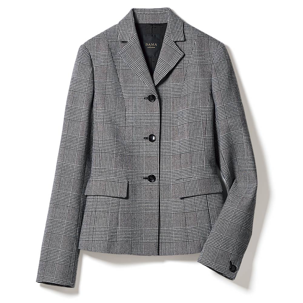 ELEGANCE CAREER 働く私を、軽やかに刷新!仕事だからと真面目すぎてはつまらない。冬も印象的な色や柄を軽やかに取り入れて、働く私をブラッシュアップ!どこで誰に会うのにも気後れしない上質感。「NIKKE(日本毛織(株))」が誇る上質ウール「MAF」で仕立てたジャケットは、ご紹介するたび大人気。優しい着心地は、膨らみ感のある柔らかな素材感ゆえ。MAFの繊細さを活かすため、紡績も織りも手間を惜しまずゆっくりと。糸を3本撚り合わせた“三子撚り”で、空気を含ませるように織り上げた軽やかなマテリアルです。今回選んだ織り柄はトラディショナルなグレンチェック。プリンセスラインとパネルライン切り替えの相乗効果による立体感、腰高に見せるフラップポケットでスタイルアップを演出。一枚で着られる絶妙なV開きにもご注目を。≫ POINTグレンチェック生地をジャケットは縦横、スカート(商品番号:125002)は斜め使いにすることで柄に動きを出し、スーツの堅さを払拭。