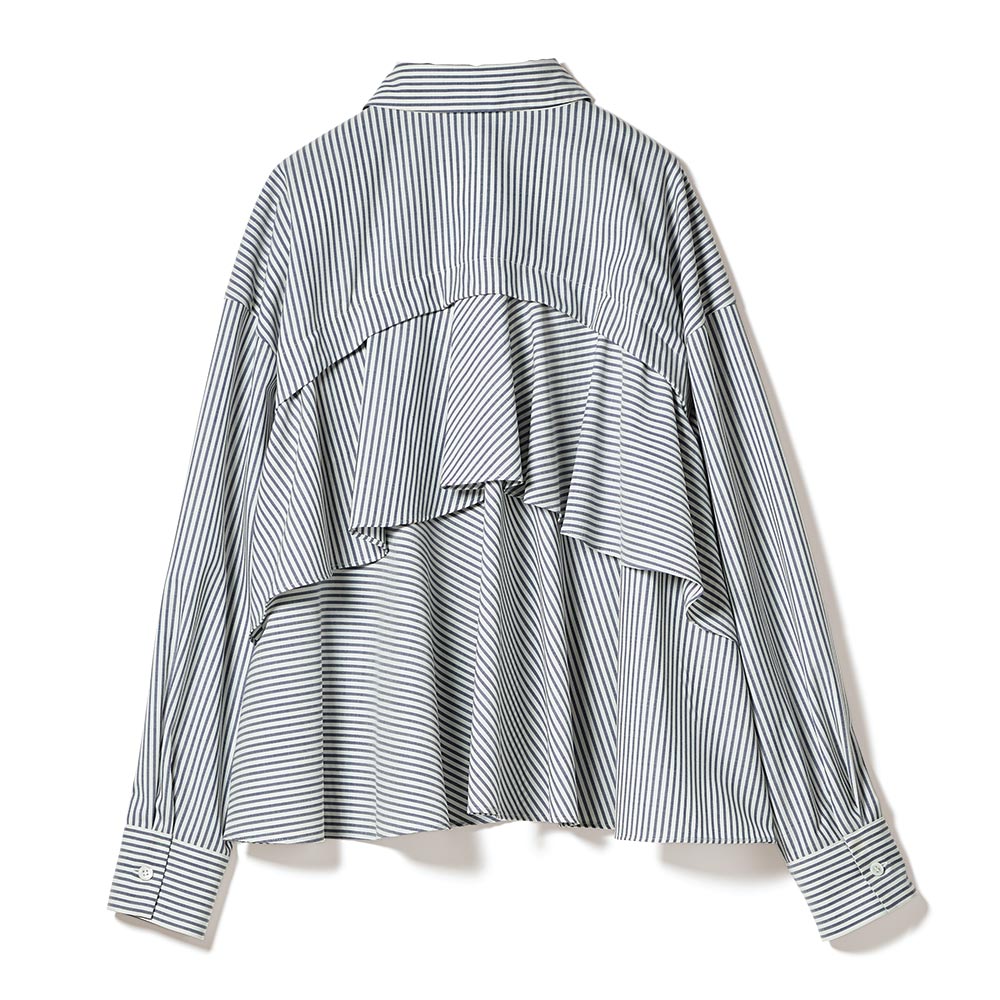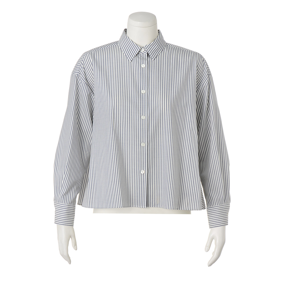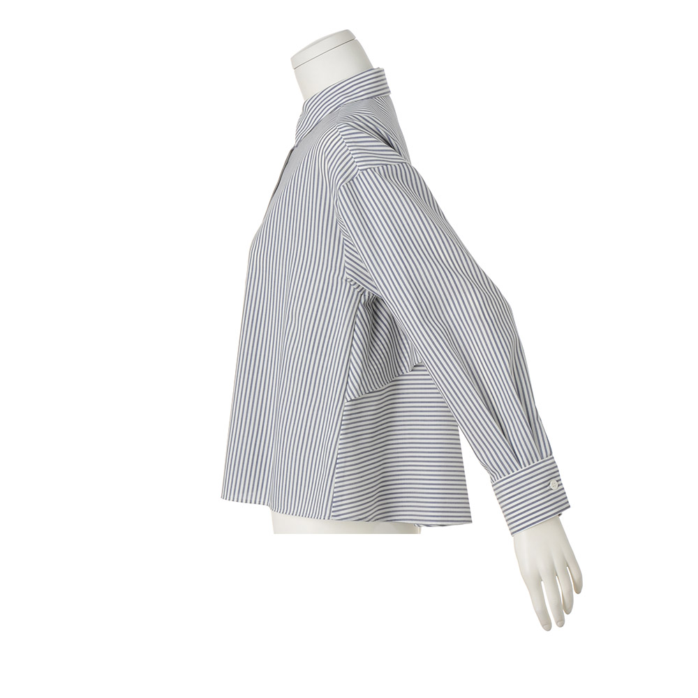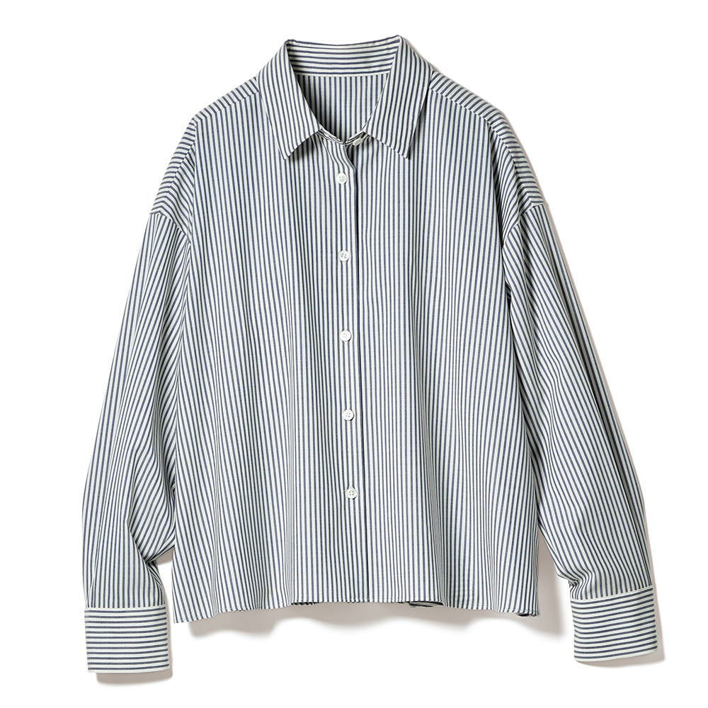 「ホワイト」を意識した、印象派スタイルダークな装いになりがちな冬は、明るさにフォーカスした着こなしが洗練のカギに。何気ない表情も輝いて見える、美麗効果の高いアイテムです。後ろ姿で魅了するリッチ感ブラウス正面はハンサムな正統派、振り向くとフリルが揺れる、意外性を秘めたデザインブラウスです。素材の作り手は日本屈指の毛織メーカー「NIKKE(日本毛織(株))」。極細糸によるピュアウールは、上品な光沢とドレープ性を持ち、ウール独特の高級感を堪能していただけます。王道のロンドンストライプでオン・オフ問わず活躍する一着に。知的な甘さが香るバックスタイルは、2段のティアードで華やかな立体感を表現。デザインが生み出す動きと軽やかさで、視覚的な遊びをプラスしました。3シーズン使えて、ご自宅で手洗いできるのも選びたくなるポイント。≫ POINT前身頃はプレーンなシャツなのでオフィスシーンにも。装いのバランスを取りやすいコンパクトなショート丈です。