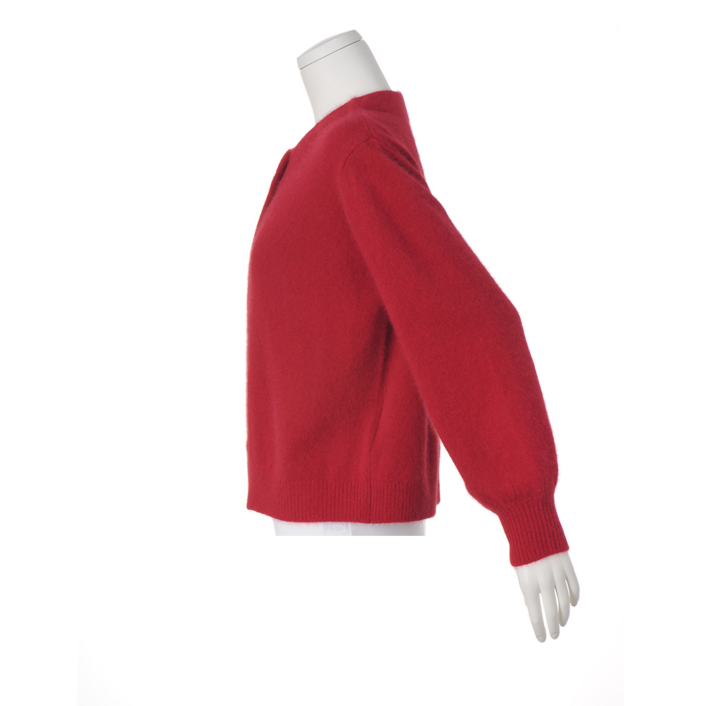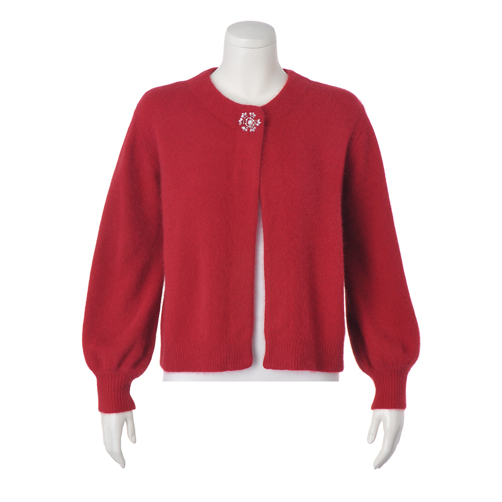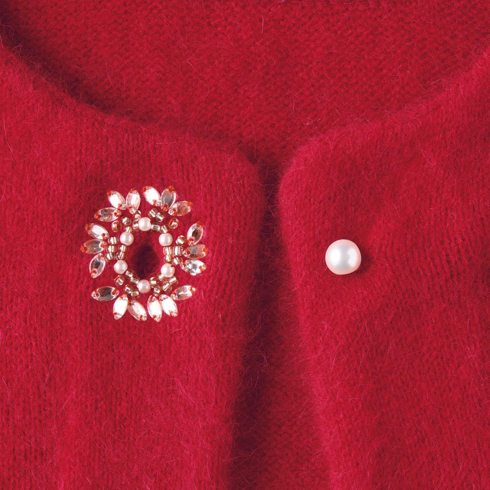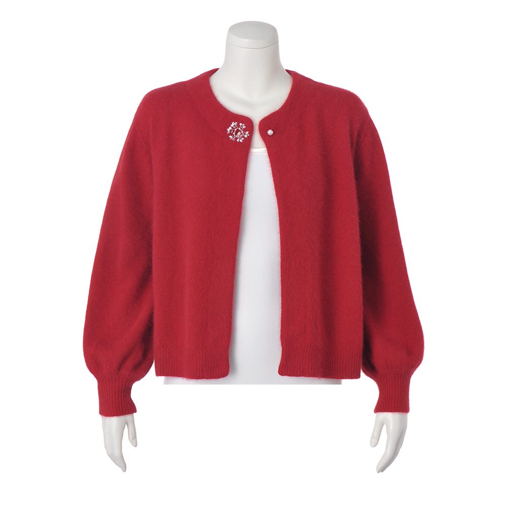 Winter Holiday楽しみなイベントが満載な季節が到来!ワクワクするシーンを迎えるべく、どこか特別感のある着こなしでファッションをアップデートしませんか?ウールフォックスのヘアリーな糸で編み上げたカーディガンは、ふんわりとした印象で、あたたかく華やか。襟元のビジュー&パールボタンは、留めると花のように見える仕様に。はずした時もそれぞれが映えるこだわりのあしらいです。コンパクトな丈感とパフスリーブ、鮮やかな色が気分を盛り上げます。