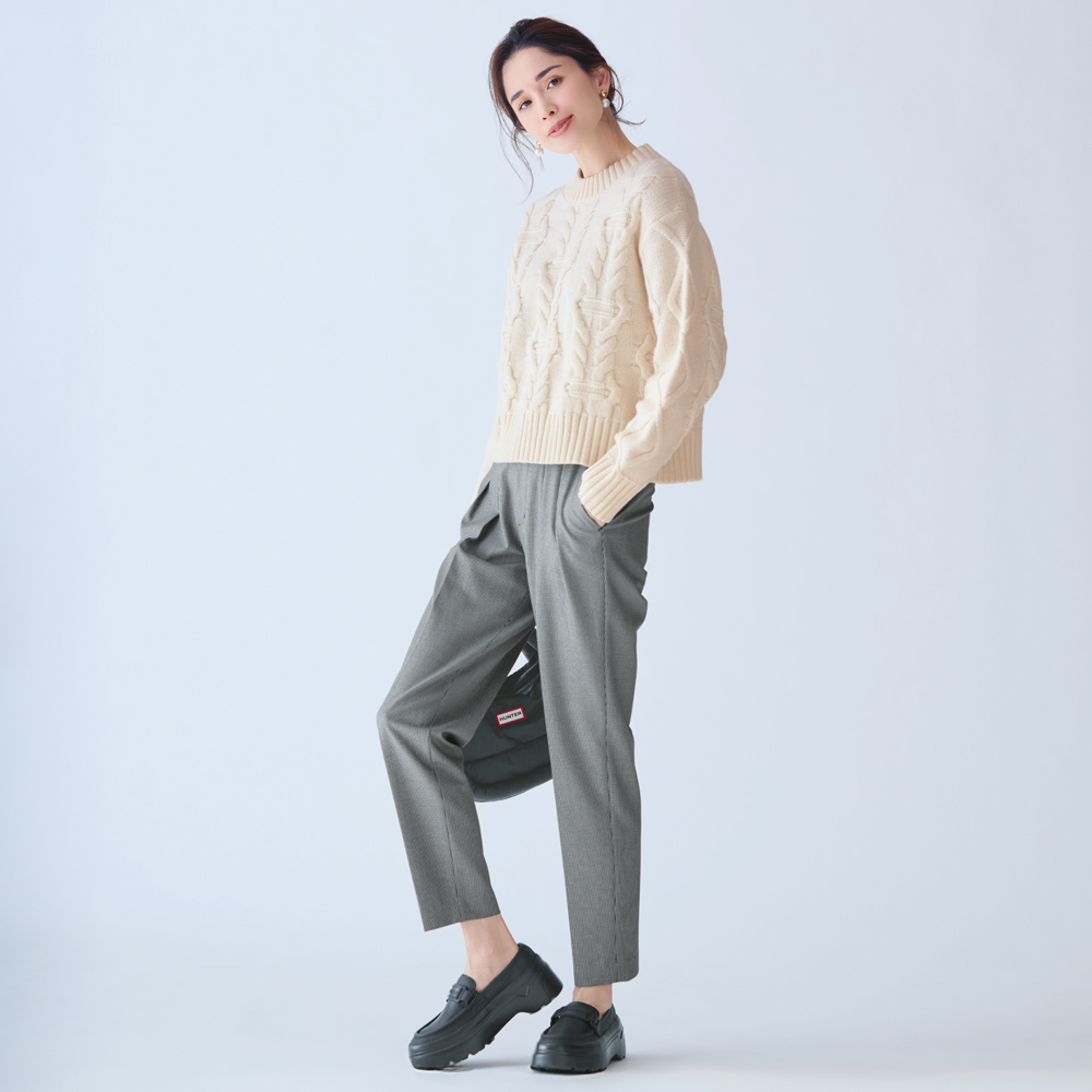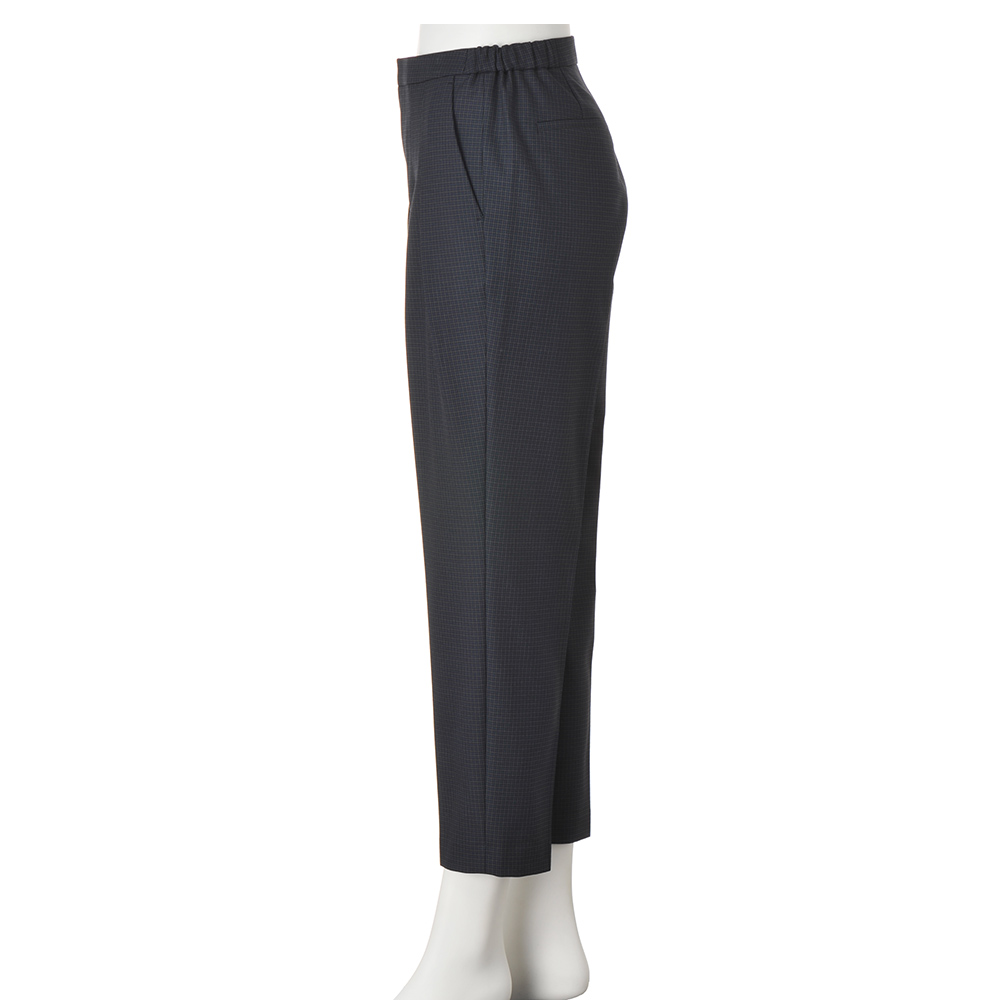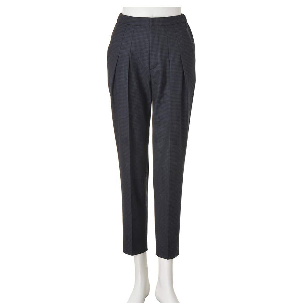 上品さと快適さを兼ね備えた大人のためのテーパードエレガントな千鳥柄とクラシカルなムードが漂うチェック柄。合わせやすい2つの柄をご用意しました。腰まわりにゆとりを持たせつつふくらみを抑え、すっきりとしたシルエットに。深めの股上と腰高に計算されたパターン、さらにはセンタープレス入りで、脚長効果も狙えます。