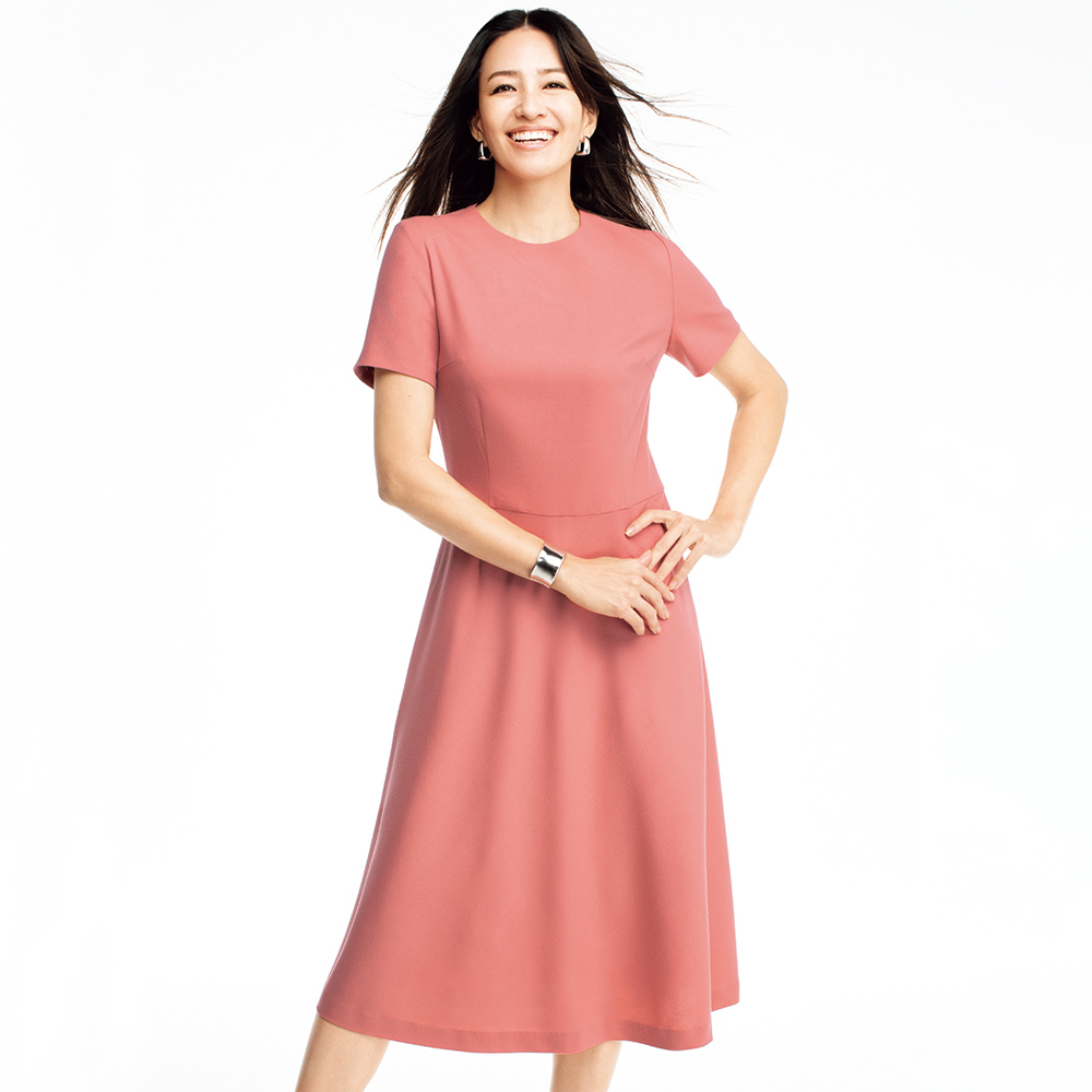 100号特別企画歴史を彩るベストセラーが、新しい魅力を纏って再登場。創刊以来、大人にふさわしい「いいもの」をご提案してきたDAMAコレクション。記念すべき100号の節目に、多くの人に愛された春夏のベストセラーをピックアップ。今の視点で再解釈した進化形アイテムを、かつての人気の秘密をひも解きながらご紹介します。NIKKE商品部門 第1位素材もシルエットも「上質」を追求したミニマルワンピースDAMAコレクションVOL.2でご紹介以来、多くの方を魅了し続ける「NIKKE(日本毛織(株))」の上質MAFウール。時代を超えた気品あるエターナルワンピースが待望の新色、ピーチピンクで登場です。どんなシーンでも揺るぎない気品とエレガンスを表現しながら、自分らしく心地よく過ごしたい。成熟した大人の美意識に応えるのが、「NIKKE(日本毛織(株))」の名素材MAFフラノジョーゼットです。滑らかで優しい肌触りとしなやかなドレープ性、繊細な陰影と膨らみのある表面感…豊かな奥行きをたたえた素材の魅力を活かしきったフィット&フレアーシルエットの半袖ワンピースは、DAMAコレクション屈指の名作といえるでしょう。バストダーツやウエストダーツ、脇下のマチで構築した立体的なフォルム、程良くリラックスした優雅さを醸すやや低めのウエスト切り替え、小さめの襟ぐり、二の腕を自然に覆う半袖…、すべてに着る人本来の美しさを引き出すために計算されているのです。新作は、明るい幸福オーラを放つピーチピンク。名品で春らしさを満喫できる喜びは格別です。モデル Rina VOICE色は肌馴染みが良く、Aラインの形がフェミニンで上品!大人可愛いね。