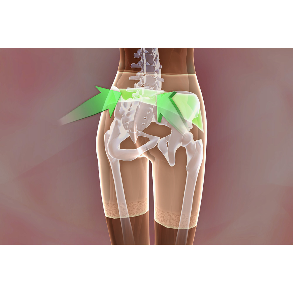 左右ズレ対策:仙骨パネルが仙骨周りの筋肉にアプローチし、左右のズレを調整します ※イメージ