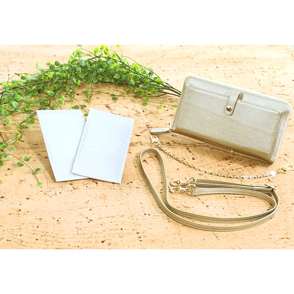 (オ)シャンパン…取り外し可能なカードケース2つ付き!ひとつに8枚収納可能。銀行用、病院用などカードを分けて収納し、使う時にお財布にセットするといった使い分けができます。