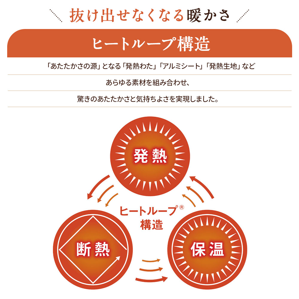 【12月5日(金)15時頃から12月16日(火)までキャンペーン価格17800円(税込/送料別)】関連商品は下記の商品名をコピーのうえ検索してください。ヒートループ(R)ハイパー お得な掛け敷きセット シングルヒートループ(R)ハイパー お得な掛け敷きセット セミダブルヒートループ(R)ハイパー お得な掛け敷きセット ダブルヒートループ(R)ハイパー ぬくぬくケット シングルヒートループ(R)ハイパー ぬくぬくケット セミダブルヒートループ(R)ハイパー ぬくぬくケット ダブルヒートループ(R)ハイパー ぬくぬくケット クイーンヒートループ(R)ハイパー ぬくぬく敷きパッド シングルヒートループ(R)ハイパー ぬくぬく敷きパッド セミダブルヒートループ(R)ハイパー ぬくぬく敷きパッド ダブルヒートループ(R)ハイパー ぬくぬく敷きパッド クイーン※お申込み状況によりキャンペーン終了前でも、販売を終了させていただく場合がございます。あらかじめご了承ください。『ヒートループ(R)構造』を採用!だから感動するほど暖かい!わずか5分※で速暖の、メガヒット暖か毛布&敷きパッドのお得なセット ※:室温17度、湿度50%にて測定。30代男性が本品掛け敷きセットと比較品を使用し、5分仰臥位安静した直後の表面温度を比較。(比較品はメーカー従来品のポリエステル毛布の掛け敷きセット) ※アイスリープ調べ ※実験の結果であり実際の環境や個人によって効果は異なります。10年以上連続ディノス冬の販売数No.1※1!さらに暖かく夜中に目が覚めると、布団が再び温まるまで寝られないことも…。そんな時におすすめなのが『ヒートループ(R)ハイパー』。アイテムは「毛布」と「敷きパッド」で、湿気を吸うと発熱し、しかもその熱を一晩中キープするすごい寝具です。とにかく、ひたすら暖かいことから10年以上連続ディノス冬の販売数No.1※1!シリーズお客様満足度90%以上※2!側生地にも発熱素材を使い、さらに暖かくなりました!気持ちのいい包まれ感にうっとりします。※1:2012年〜2024年度10月〜3月のディノスの冬物寝具におけるシリーズ累計販売数※2: 2012年7月〜2024年5月のヒートループ(R)シリーズ(旧モデル)に対し、ディノスオンラインショップに寄せられた評価で満足・大満足をいただいた割合。【ポイント】(1)【吸湿発熱】驚きの発熱パワー「ミリオンホットDXわた」(2)【断熱】暖かさを閉じ込める「やわらか遮熱アルミ生地」(3)【保温+発熱】もっと暖かく!「ふわふわマイクロファイバー素材」(4)洗濯機で丸洗いOK!(5)全身をすっぽり包んでぬくぬく!お得な掛け敷きセット【ポイント1】驚きの発熱パワー「ミリオンホットDXわた」湿気を吸って発熱するので、暖かさに加えて布団の中がムレにくく快適。驚きの発熱パワーにより、布団に入った瞬間からポカポカに!【ポイント2】暖かさを閉じ込める「やわらか遮熱アルミ生地」ケット上側とパッド下側に、断熱効果のある遮熱アルミ生地を採用。厳しい冷え込みや床からの冷気をブロックしながら熱を閉じ込めます。やわらかなアルミシートを採用しているため肌沿いも損ねません。【ポイント3】さらに側生地でも発熱!「ふわふわマイクロファイバー素材」肌面の側生地も発熱素材に!毛足の密集したふんわりなめらかなマイクロファイバーが暖気をしっかりキープします。また肌面は公定水分率の高いレーヨン混の生地に、制電糸でキルトを施しているため、静電気もしっかり対策。嫌なパチパチ感を軽減します。【ポイント4】洗濯機で丸洗いOK!洗濯機で丸洗いできるのでお手入れ簡単。清潔に気持ちよくお使いいただけます。※布団をご家庭で洗濯する際は必ずお手持ちの洗濯機の説明書をご覧ください。メーカー・機種・容量により布団の洗濯ができない場合はクリーニング店、大型洗濯機のあるコインランドリー等での洗濯をおすすめします。※ドラム式乾燥機の使用はできません。【ポイント5】全身をすっぽり包んでぬくぬく!お得な掛け敷きセットぬくぬくケットはヒートループ(R)ハイパーならではの発熱&保温力に加え、体に沿うキルトパターンによりすき間から熱が逃げにくく、包み込まれるような暖かさ。ぬくぬく敷きパッドは布団に入った瞬間の「ヒヤッ」を防いで背中や腰を暖かく。床からの底冷え対策にもおすすめです。併せてお使いいただくことでさらなる暖かさと心地よさを全身でお楽しみいただけます!■■■ヒートループ(R)シリーズを買えるのはディノスだけ!!■■■暖かさへのさらなる追求のために素材を厳選し、限界までお手頃な価格にもこだわりました!冬の眠りをぐんと暖かく快適にしてくれる「ヒートループ(R)ハイパー」はディノス限定販売です。